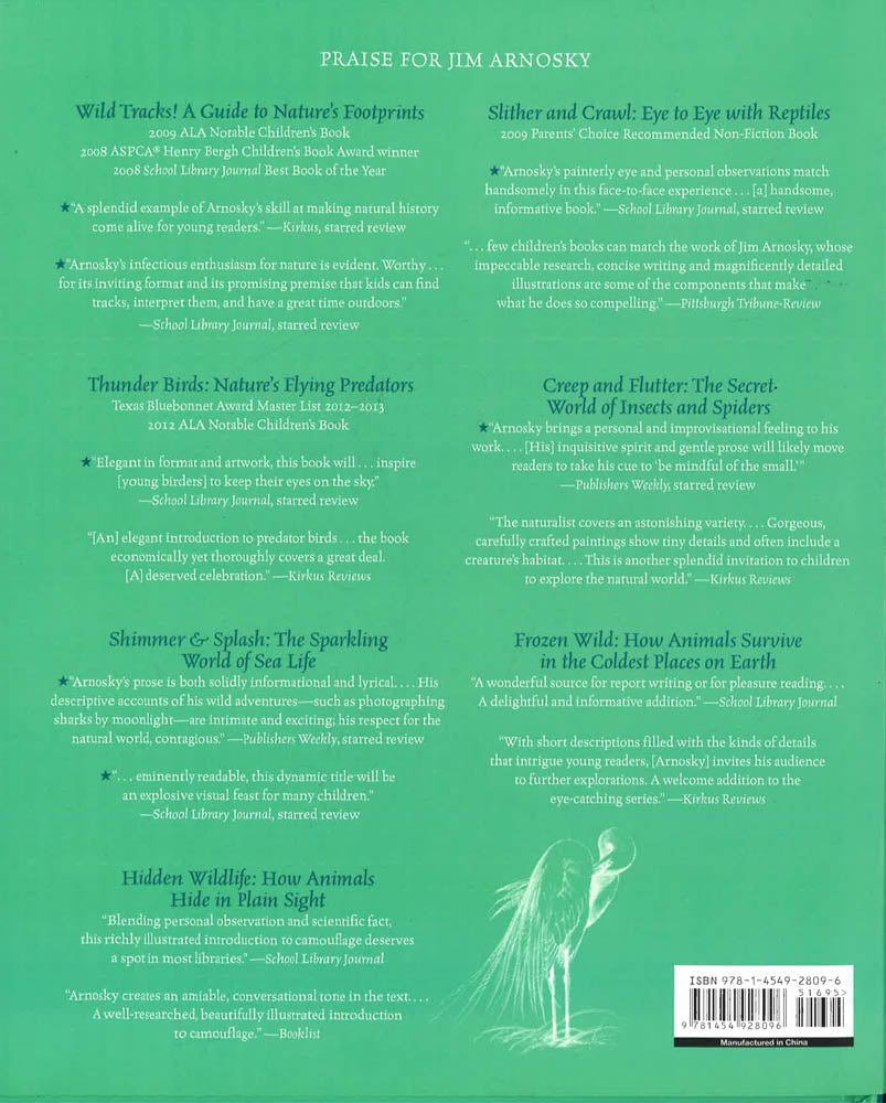 Meet the show-offs! With their wacky eyebrows, beautiful patterns, and bright feathers and scales, many animals seem to be saying: “Look at ME!” That behavior certainly won’t protect them from predators, so why do they do it? Jim Arnosky explores a multitude of creatures from across the globe to reveal the reasons behind their attention-grabbing behavior. His spectacular art, including amazing gatefolds, presents brilliantly colored poison arrow frogs of the rainforest; the breeding plumage of egrets and peacocks; the impressive antlers of deer and elk; the threatening hoods of cobras; the balloon-like displays of African bullfrogs; and the dramatic color transformation of spawning fish.
