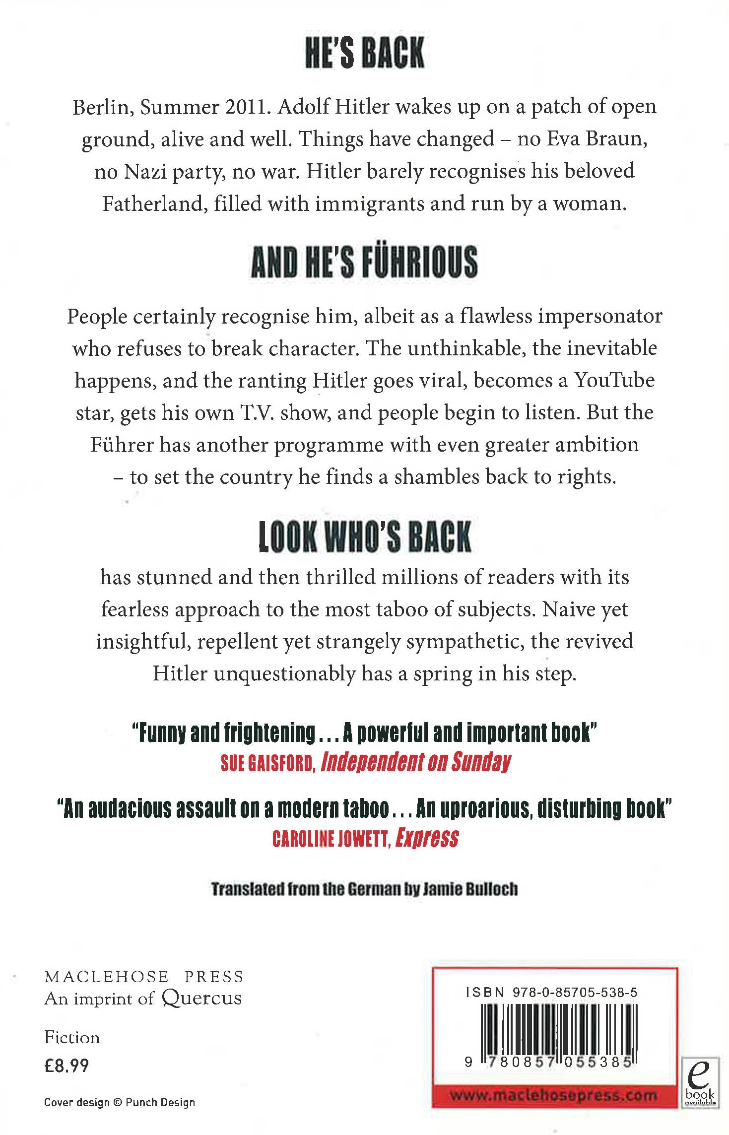The smash-hit satirical bestseller, more than 3 million copies sold worldwideFilm a box-office hit in Germany, now available on NETFLIXA two-part BBC Radio 4 Dramatisation directed by and starring David Threlfall (Shameless)Berlin, Summer 2011. Adolf Hitler wakes up on a patch of open ground, alive and well. Things have changed - no Eva Braun, no Nazi party, no war. Hitler barely recognises his beloved Fatherland, filled with immigrants and run by a woman. People certainly recognise him, albeit as a flawless impersonator who refuses to break character. The unthinkable, the inevitable happens, and the ranting Hitler goes viral, becomes a YouTube star, gets his own T.V. show, and people begin to listen. But the Fuhrer has another programme with even greater ambition to set the country he finds a shambles back to rights. Look Who's Back stunned and then thrilled 1.5 million German readers with its fearless approach to the most taboo of subjects. Naive yet insightful, repellent yet strangely sympathetic, the revived Hitler unquestionably has a spring in his step.