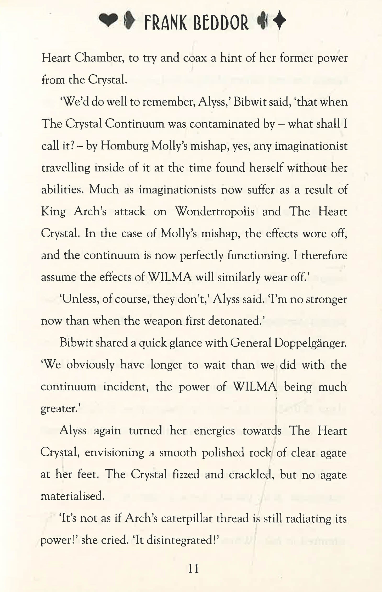 The final gripping instalment of the New York Times best-selling trilogy The Looking Glass Wars from award-winning author and Hollywood film-maker Frank Beddor. Behind a pack of cards are a pack of lies. Find out what really happened to Alice in Wonderland! Unlike the comforting fairytale created by Lewis Carroll, the true story of Wonderland involves bloodshed, murder, revenge and war. The battle for Wonderland has been lost and the Heart Crystal's power has been depleted thanks to King Arch's devastating weapon, WILMA. Imagination has been wiped from the land and the people of Wonderland have lost their greatest asset. Most alarmingly, even Queen Alyss is without her powers as her Queendom hangs in the balance. Can Alyss and those still faithful to her overcome their adversaries and restore order in Wonderland once and for all. Who's holding all the cards now?