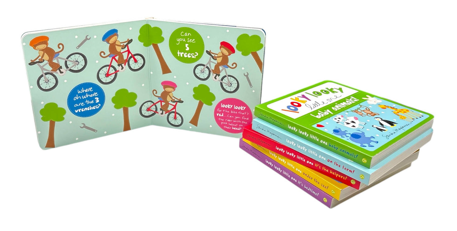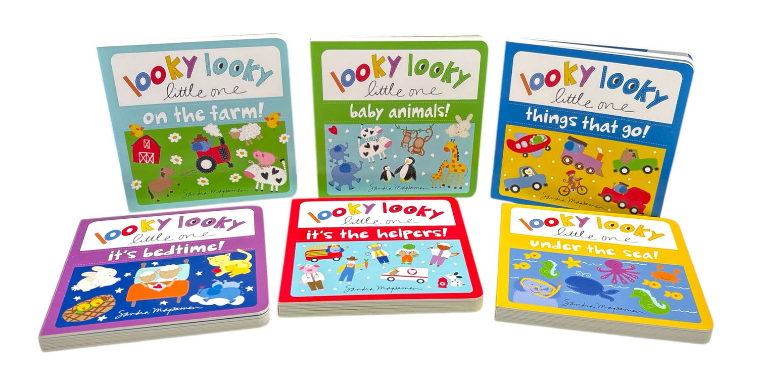 From the USA Today bestselling author of Welcome Little One Sandra Magsamen comes an all-new, interactive seek and find series for babies and toddlers with baby animals, the perfect Christmas gift! Looky looky at an exciting new approach to early learning and introduce your little one to our great, big, beautiful world! In this adorable can-you-find board book adventure, activities will exercise young brains and challenge little ones to search for and identify objects, colors, numbers, shapes, sounds, animals, people, and themes with baby animals. The Looky Looky series is perfect for inspiring learning and curiosity and makes a wonderful gift or read aloud for any occasion. Books in the Boxed Set On the Farm! Baby Animals! Things That Go! Undert the Sea! It's Bedtime! It's the Helpers! Target age group 0-3