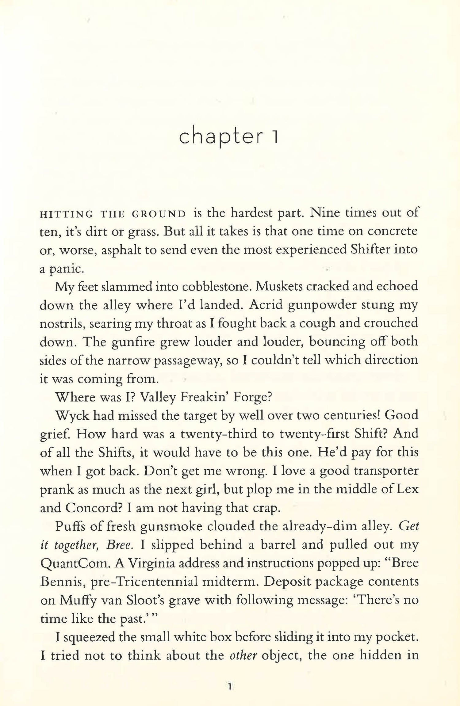 After Bree botches a solo midterm to the 21st century by accidentally taking a boy hostage (a teensy snafu), she stands to lose her scholarship. But when Bree sneaks back to talk the kid into keeping his yap shut, she doesn't go back far enough. The boy, Finn, now three years older and hot as a solar flare, is convinced he's in love with Bree, or rather, a future version of her that doesn't think he's a complete pain in the arse. To make matters worse, she inadvertently transports him back to the 23rd century with her.