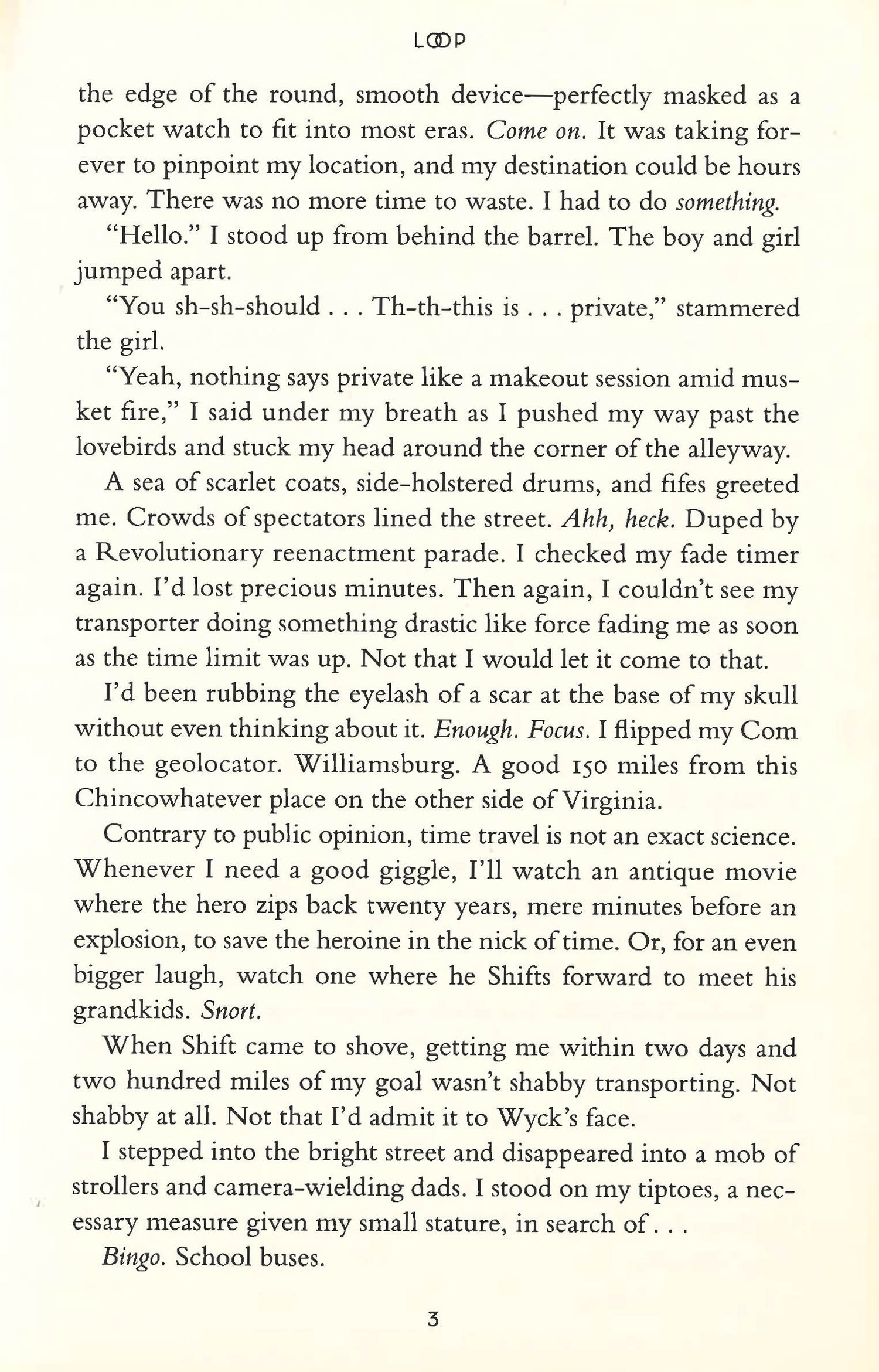 Once home, Bree discovers that a recent rash of accidents at her school are anything but accidental. Someone is attacking time travelers. As Bree and her temporal tagalong uncover seemingly unconnected clues--a broken bracelet, a missing data file, the art heist of the millennium--that lead to the person responsible, she alone has the knowledge to piece the puzzle together. Knowledge only one other person has. Her future self.
