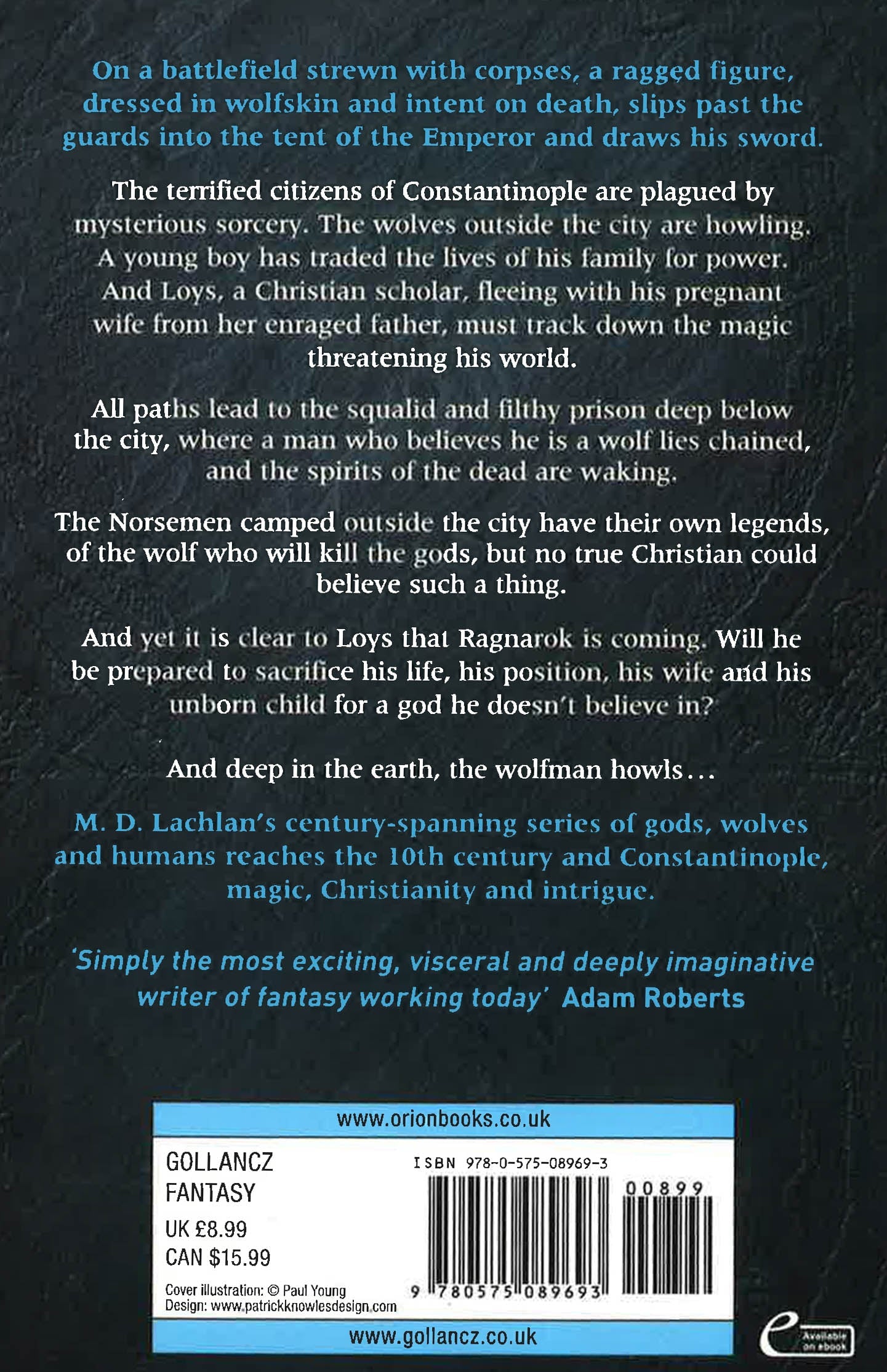 On a battlefield strewn with corpses, a ragged figure, dressed in wolfskin and intent on death, slips past the guards into the tent of the Emperor and draws his sword. The terrified citizens of Constantinople are plagued by mysterious sorcery. The wolves outside the city are howling. A young boy had traded the lives of his family for power. And a Christian scholar, fleeing with his pregnant wife from her enraged father, must track down the magic threatening his world. All paths lead to the squalid and filthy prison deep below the city, where a man who believes he is a wolf lies chained, and the spirits of the dead are waking. The Norsemen camped outside the city have their own legends, of the wolf who will kill the gods, but no true Christian could believe such a thing. And yet it is clear to Loys that Ragnarok is coming. Will he be prepared to sacrifice his life, his position, his wife and his unborn child for a god he doesn't believe in?