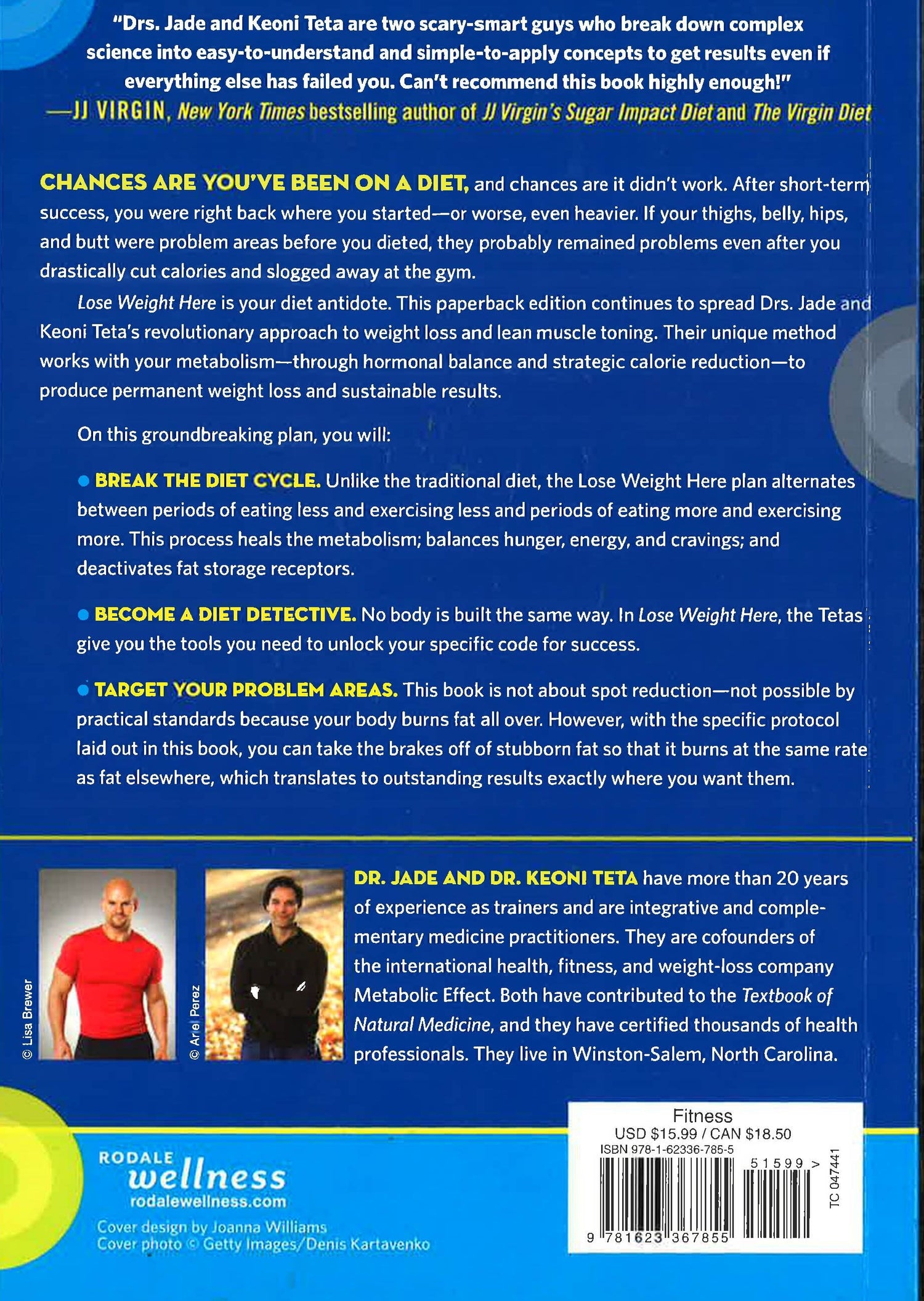 Despite best efforts to exhaustively exercise and religiously diet, many are disappointed when their large pear shapes merely become smaller pear shapes. What's more, the best results never last: research confirms that 95 percent of people who go on diets will regain all of their lost weight, and 66 percent of dieters will end up even fatter than they were before they started dieting. And where does the weight grow back fastest? The stubborn problem areas people are most determined to target: the belly, butt, hips, and thighs. What if you could lose weight exactly where you want to, without over exercising or depriving your body of the fuel it desperately needs to stay healthy? And what if you could see results in two weeks? With the science of "Spot Reduction" it's possible! Lose Weight Here is a "rethink" of conventional weight management techniques. It optimises the two proven components for successful weight loss: low calories and hormone balance. Lose Weight Here will show readers how to combine the hormonal science of fat burning with the revolutionary science of spot training to reverse metabolic damage to get the bodies they have always dreamed of. Lose Weight Here is based on hard science, sound nutritional and physiological data, remarkable testimonials, and remarkable before and after photos from some of the 100,000 people the authors have helped in their gym and online. Unlike disappointing traditional diets, Lose Weight Here instructs readers on how to successfully alternate between periods of eating and exercising more, and periods of eating and exercising less. This unique method deactivates anti-burn receptors so that problem areas can be targeted and trimmed. For lasting results, Lose Weight Here teaches readers how to repair their metabolisms to maintain their hard earned results for life.
