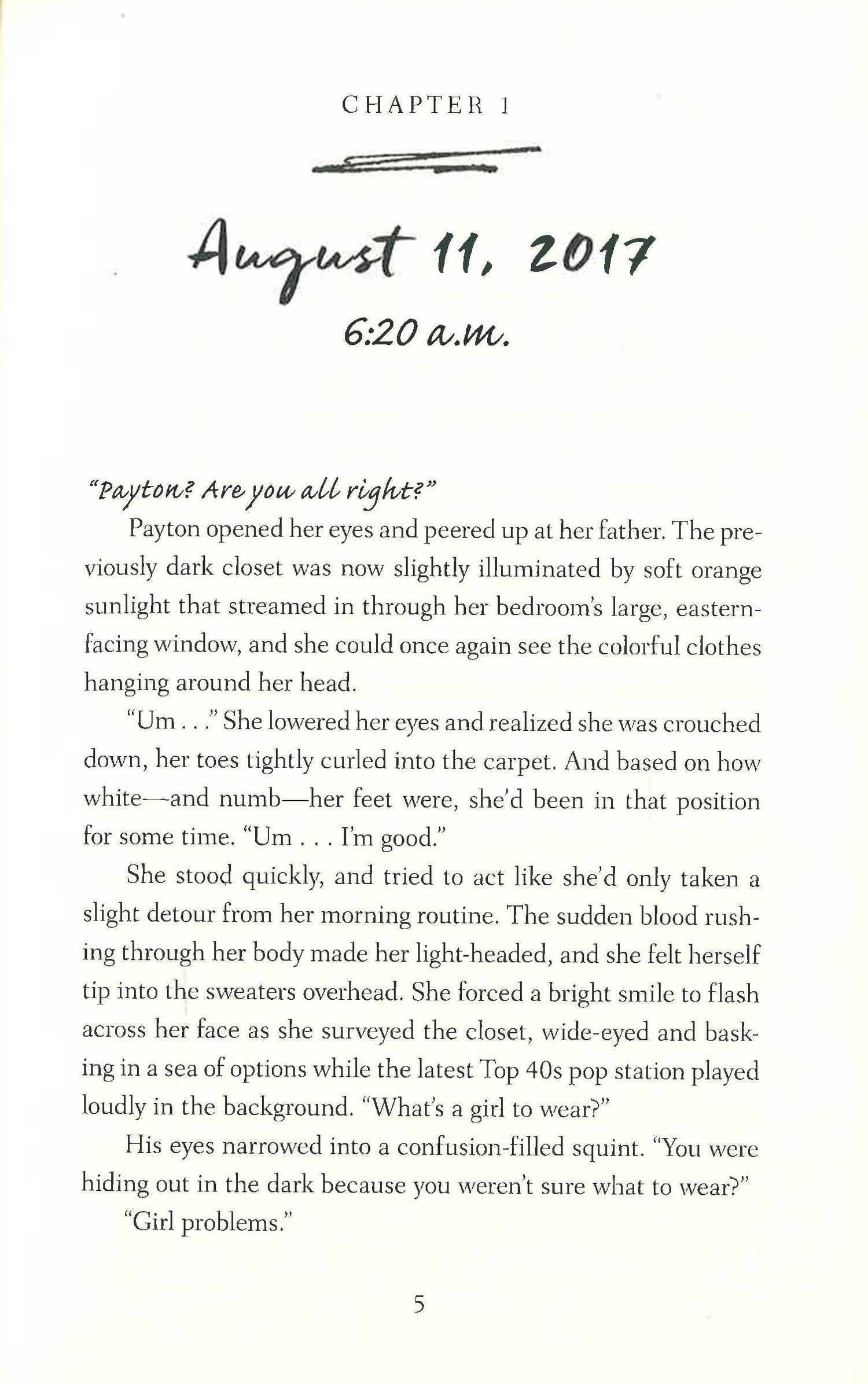 More than a year has passed since seventeen-year-old Payton Brave’s twin sister went missing; and Payton, in her desperate attempt to hold on to what’s left of Dylan’s memory, is starting to crack.Lost in the mystery and turmoil of her sister’s disappearance, Payton must overcome the aftermath of being the one left behind. She’s unable to remember even the smallest piece of what happened the day Dylan vanished. When sudden and reckless outbursts throw her from the graces of popularity to the outskirts of high school society, her new status attracts a crowd of friends she never anticipated - including a troubling romance with her sister’s boyfriend, Cole.New clues unearth about the circumstances of her disappearance when another missing girl’s body is recovered from a nearby lake, the victim’s features eerily similar to Dylan’s. The more Payton pries open the clenches of her blocked memories, yielding to her need to know what happened, the further down the path of danger she goes. The darkness around her sister’s disappearance grows and the truth becomes more and more unbearable. And what she finds might just cost her her life.
