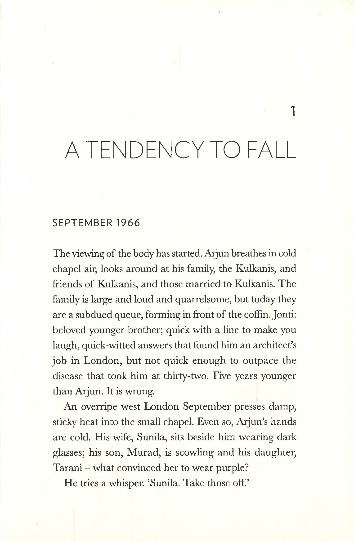 Arjun brought his family to North West London after Indian independence, but hopes of a better life rapidly dissipate. His wife Sunila spends all day longing for an Aga and a nice English tea service, his son hates anything Indian, and his daughter, well, that’s a whole other problem. Reeling from the death of his younger brother, Arjun vainly attempts to enforce the values he grew up with, while his family eagerly embrace the new. But when his right leg suddenly fails him, Arjun’s growing sense of imbalance is more than external.