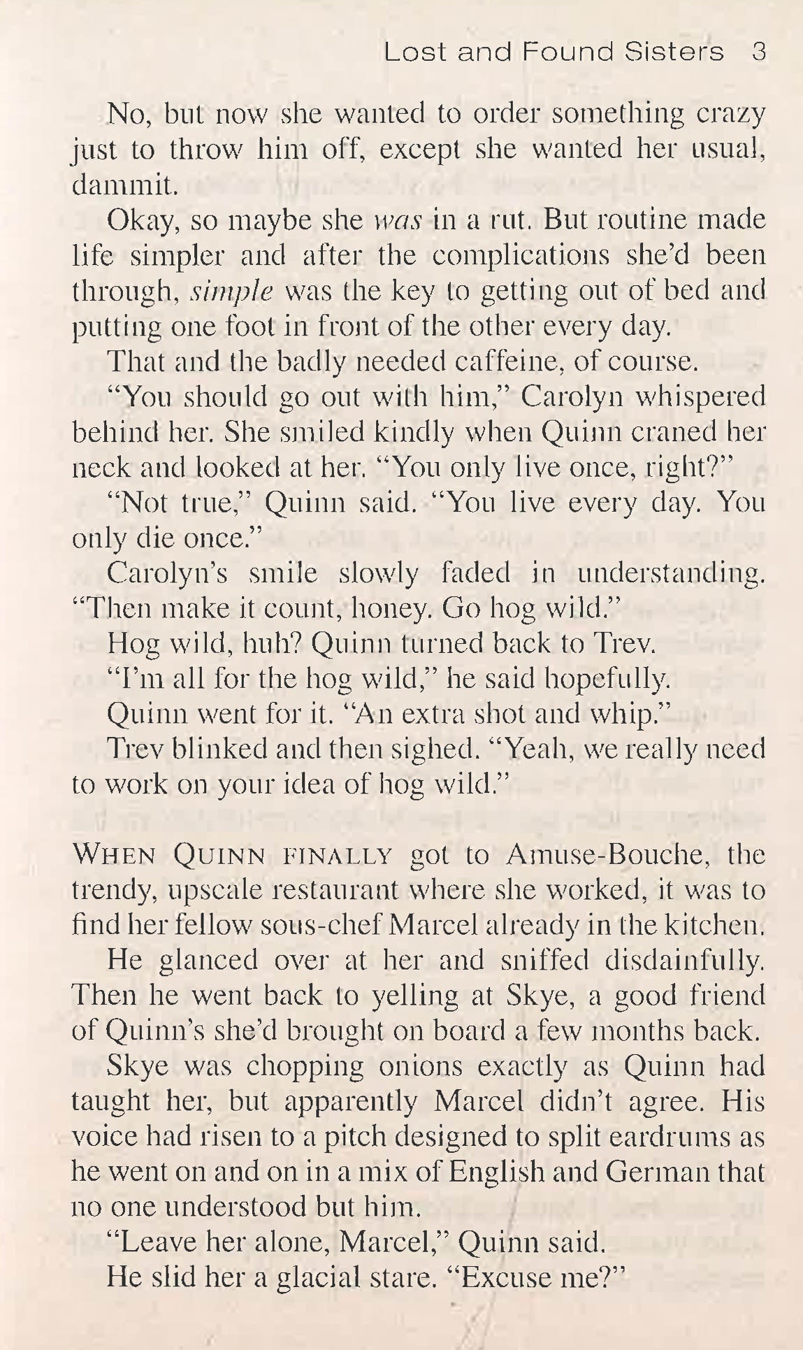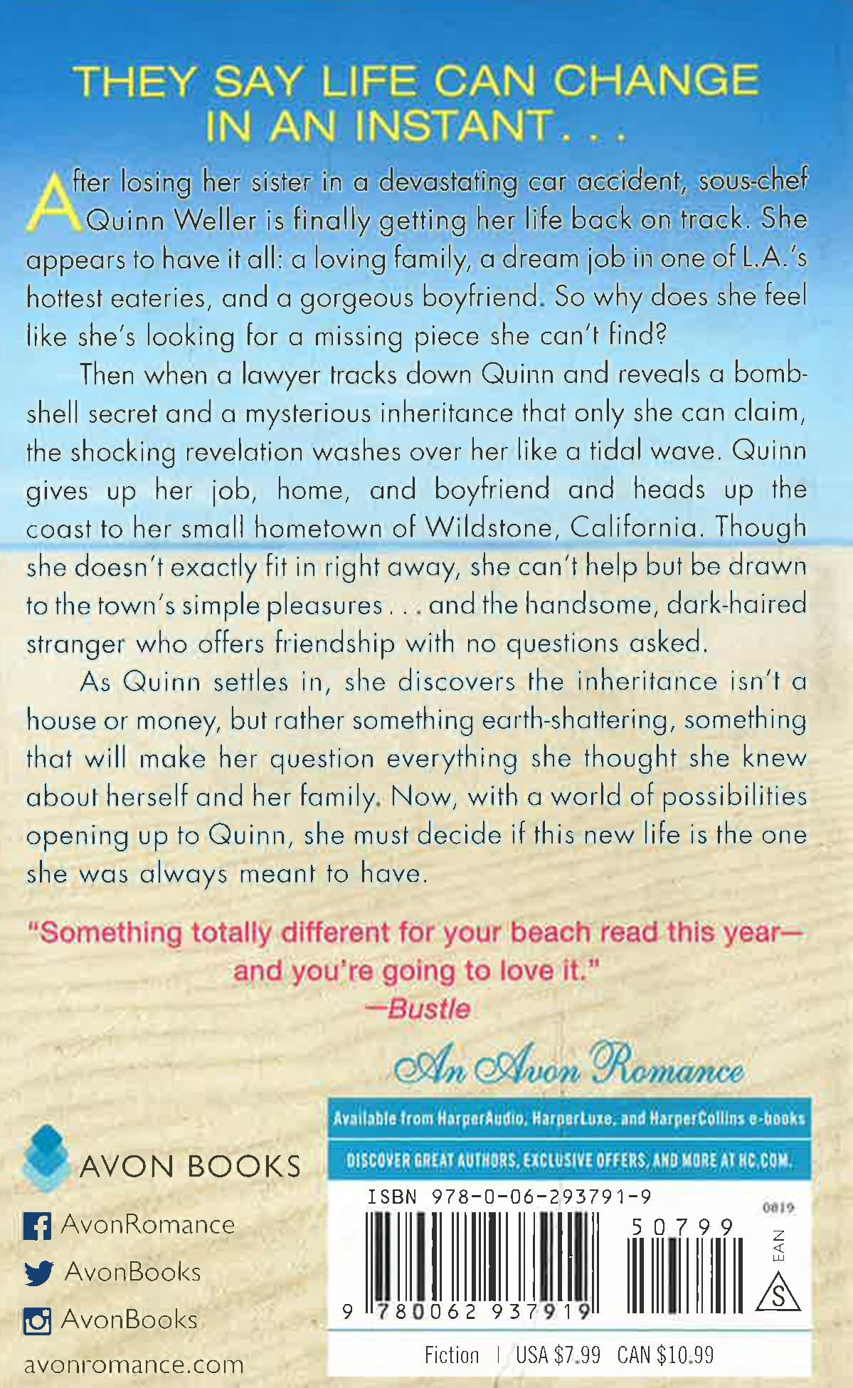 After losing her sister in a devastating car accident, chef Quinn Weller is finally getting her life back on track. She appears to have it all: a loving family, a dream job in one of L.A.'s hottest eateries, and a gorgeous boyfriend. So why does she feel like she's looking for a missing piece she can’t find?