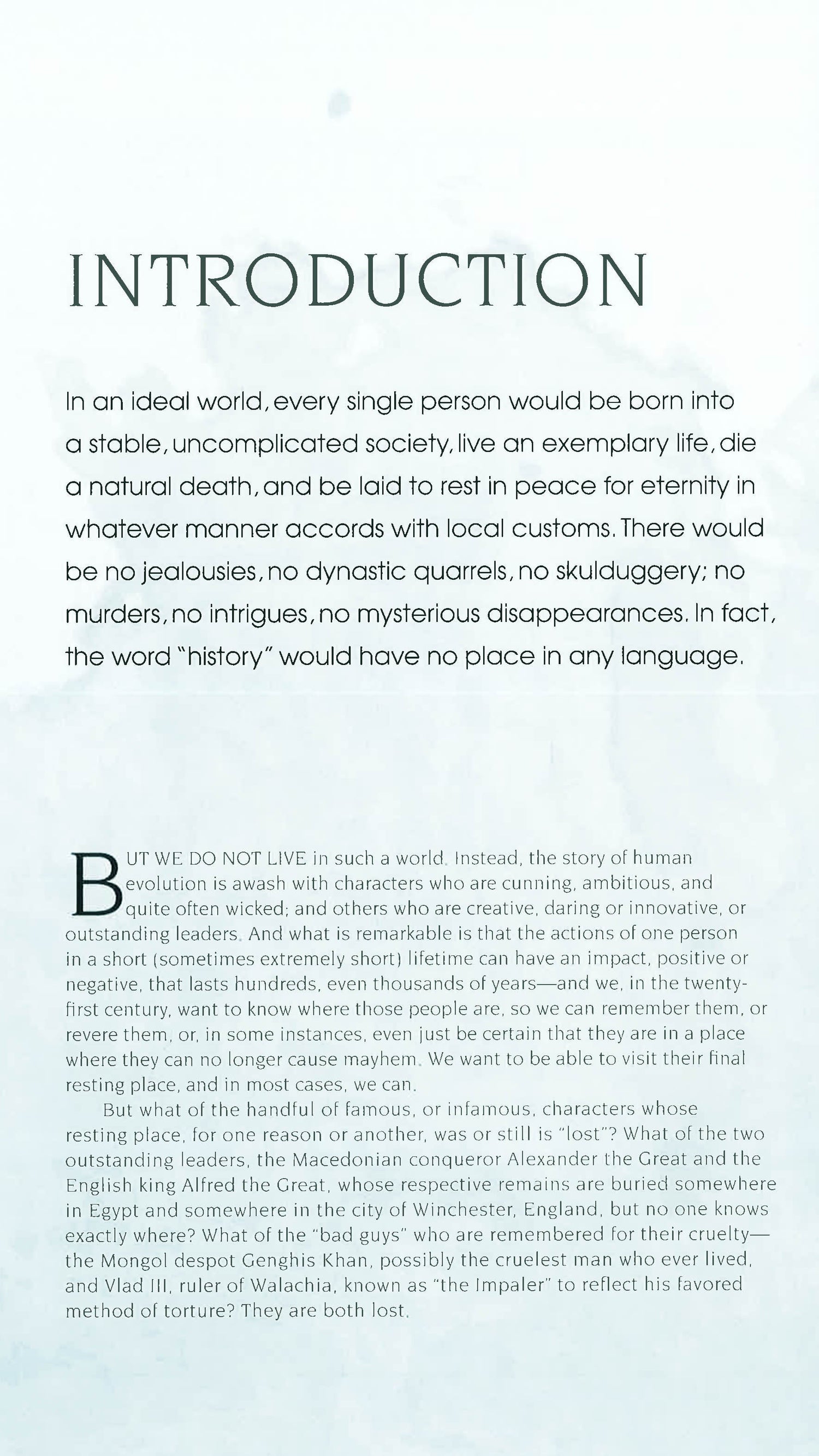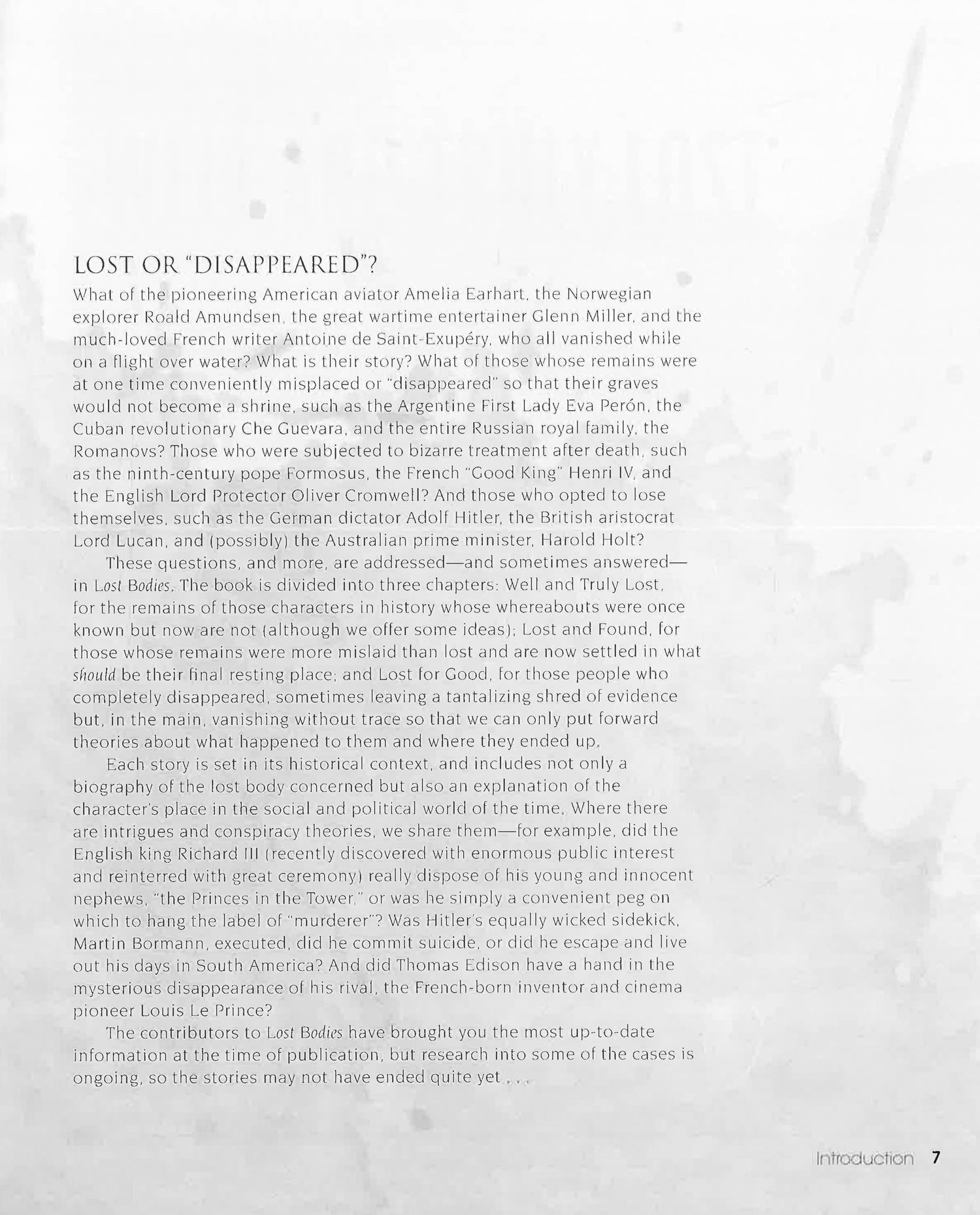 Lost Bodies presents to you the ultimate in cold cases: the great figures of history whose mortal remains have vanished or are shrouded in mystery.