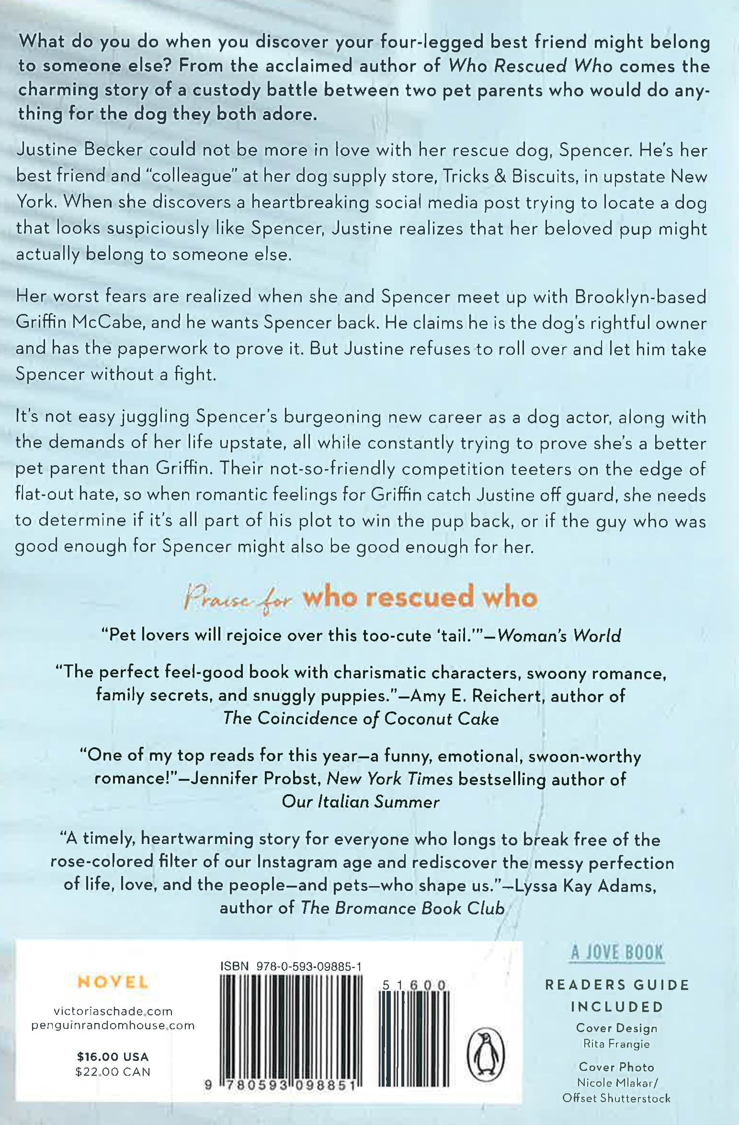 Justine Becker could not be more in love with her rescue dog, Spencer. He's her best friend and "colleague" at her dog supply store, Tricks & Biscuits, in upstate New York. When she discovers a heartbreaking social media post trying to locate a dog that looks suspiciously like Spencer, Justine realizes that her beloved pup might actually belong to someone else.