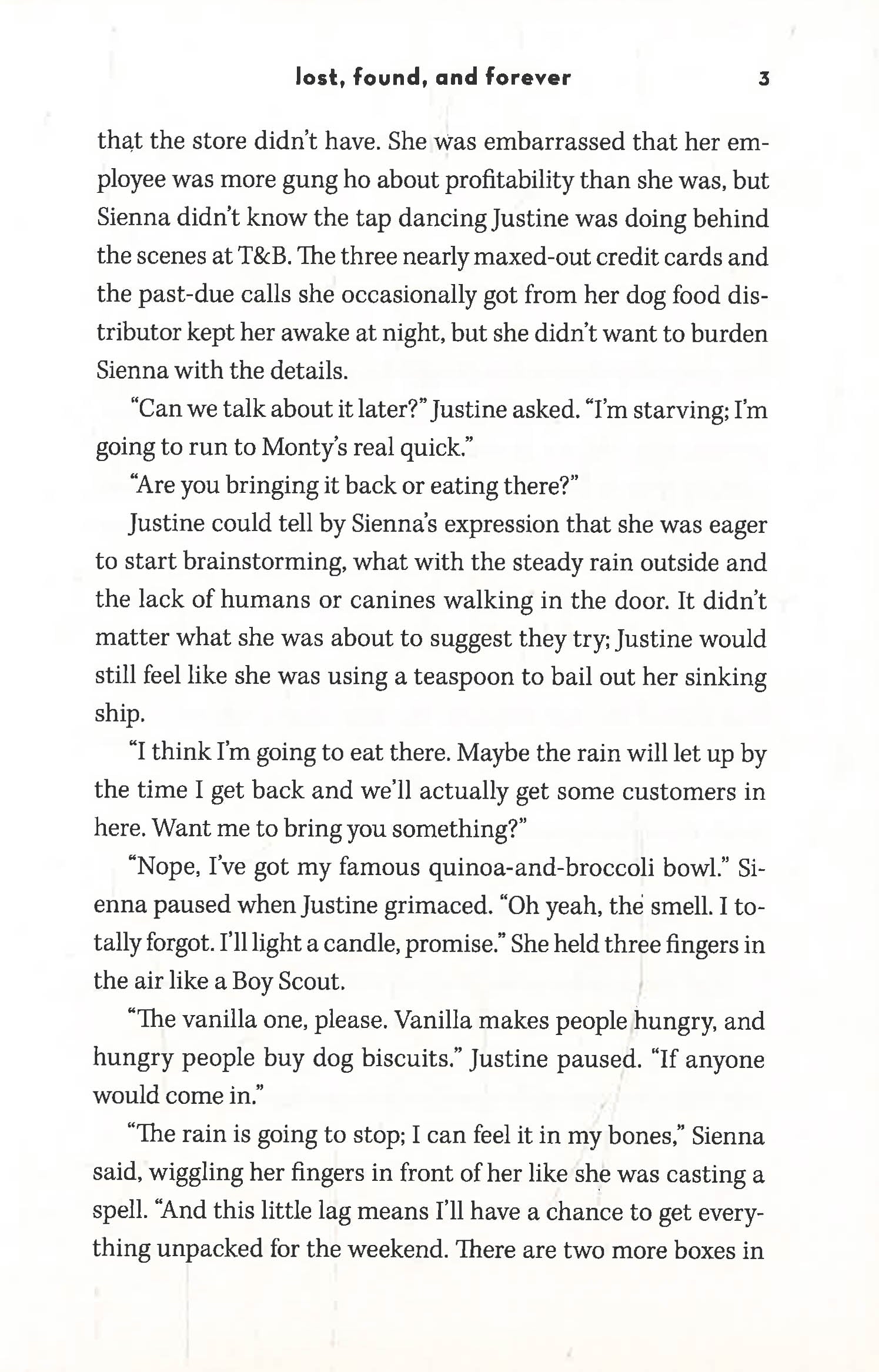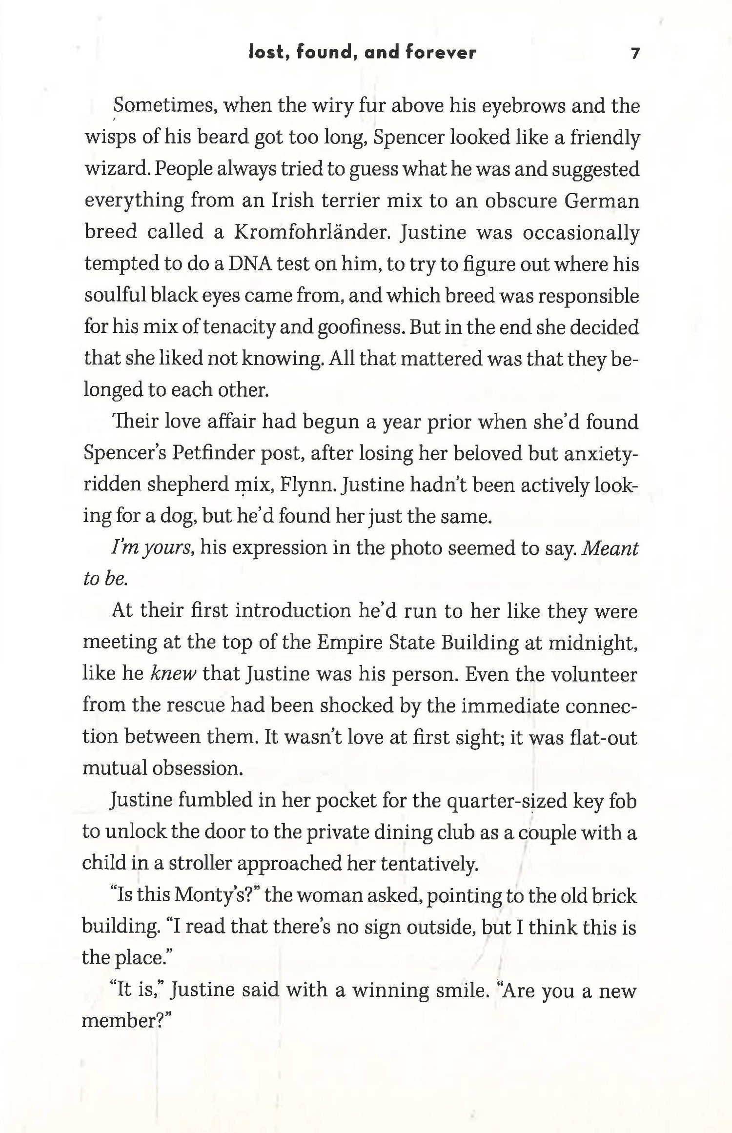 Her worst fears are realized when she and Spencer meet up with Brooklyn-based Griffin McCabe, and he wants Spencer back. He claims he is the dog's rightful owner, and has the paperwork to prove it. But Justine refuses to roll over and let him take Spencer without a fight.