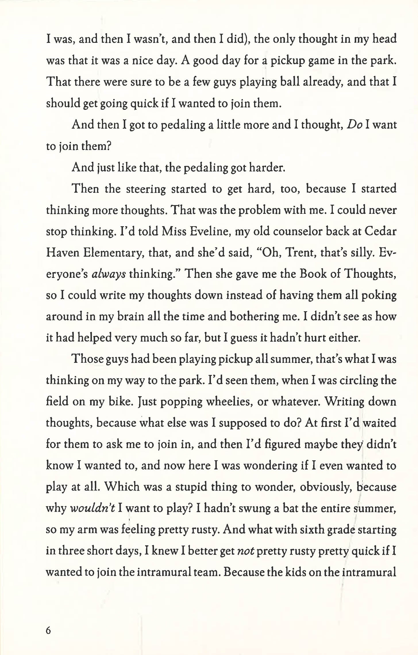 From the author of A Tangle of Knots and Absolutely Almost, a touching story about a boy who won't let one tragic accident define him. Everyone says that middle school is awful, but Trent knows nothing could be worse than the year he had in fifth grade, when a freak accident on Cedar Lake left one kid dead, and Trent with a brain full of terrible thoughts he can't get rid of. Trent's pretty positive the entire disaster was his fault, so for him middle school feels like a fresh start, a chance to prove to everyone that he's not the horrible screw-up they seem to think he is. If only Trent could make that fresh start happen.