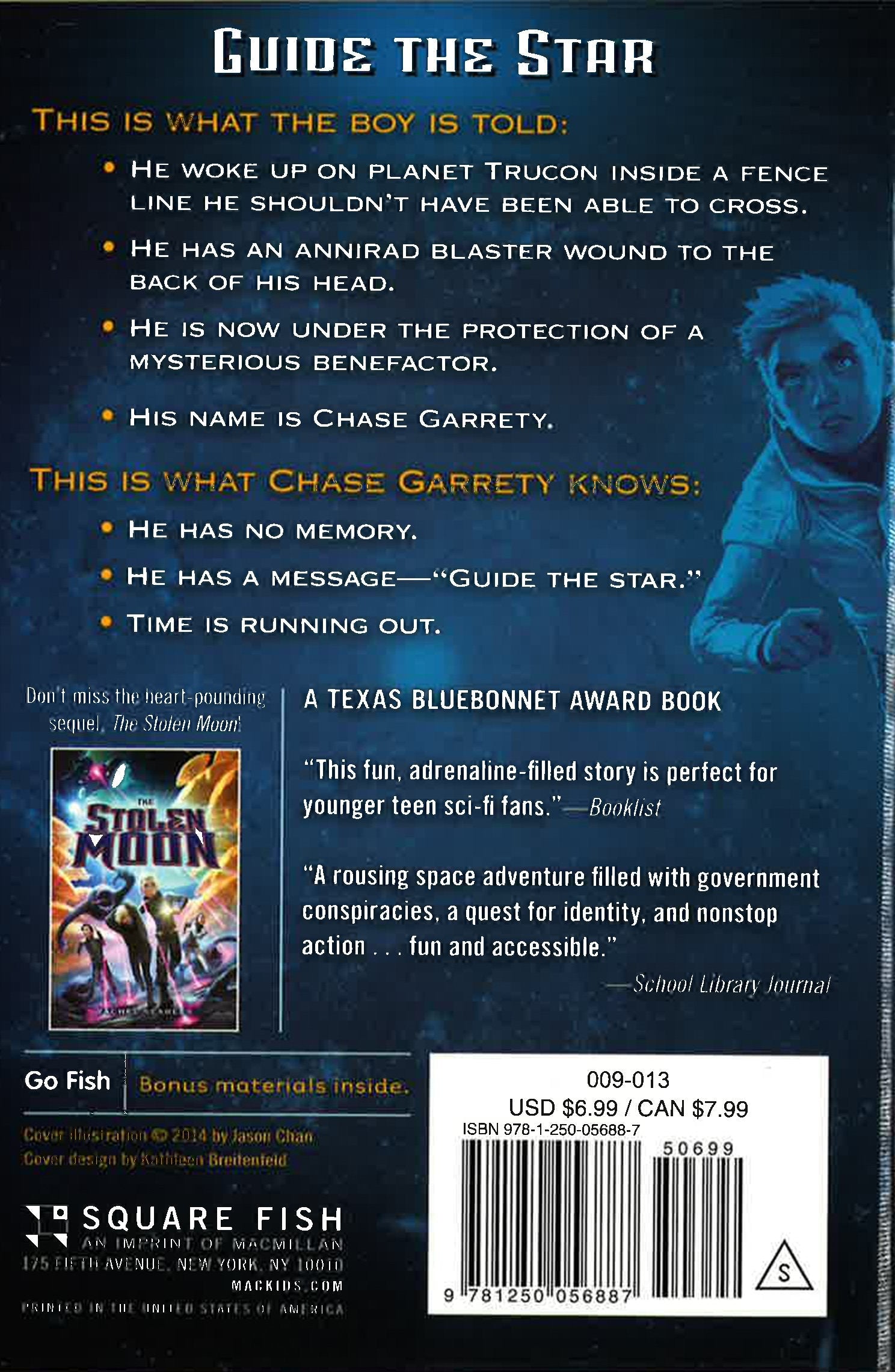 This is what the boy is told: - He woke up on planet Trucon, inside of a fence line he shouldn't have been able to cross. - He has an annirad blaster wound to the back of his head. - He has no memory. - He is now under the protection of a mysterious benefactor. - His name is Chase Garrety. This is what Chase Garrety knows: - He has a message: "Guide the star." - Time is running out.