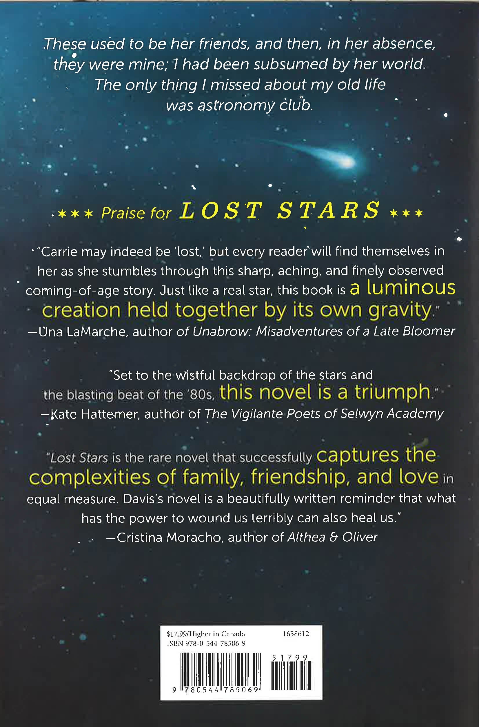 Eleanor & Park meets Perks of Being a Wallflower in this bittersweet 1980's story about love, loss, and a comet that only comes around every ninety-seven years. When Carrie looks through her telescope, the world makes sense. It's life here on Earth that's hard to decipher. Since her older sister, Ginny, died, Carrie has been floating in the orbit of Ginny's friends, the cool kids, who are far more interested in bands and partying than science. Carrie's reckless behavior crosses a line, and her father enrolls her in a summer work camp at a local state park. There, Carrie pulls weeds and endures pep talks about the power of hard work. Despite her best efforts to hate the job, Carrie actually feels happy out in nature. And when she meets Dean--warm, thoughtful, and perceptive--she starts to discover that her life can be like her beloved night sky, with black holes of grief for Ginny and dazzling meteors of joy from first love.