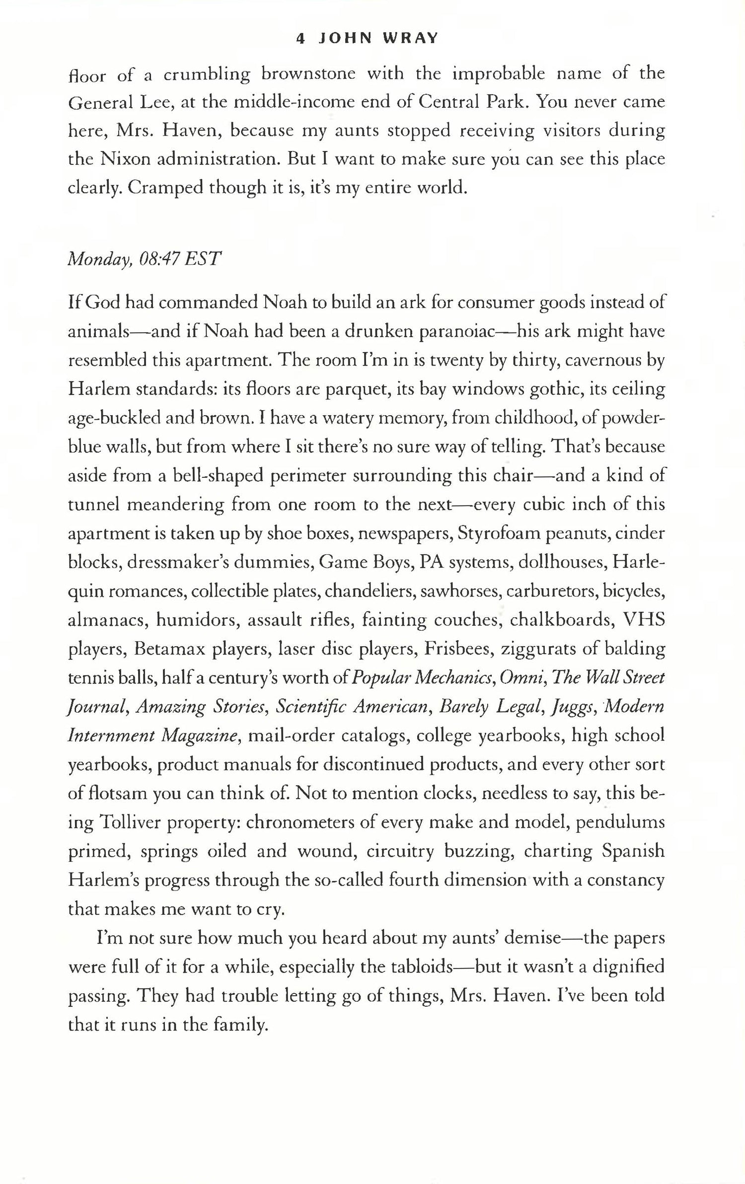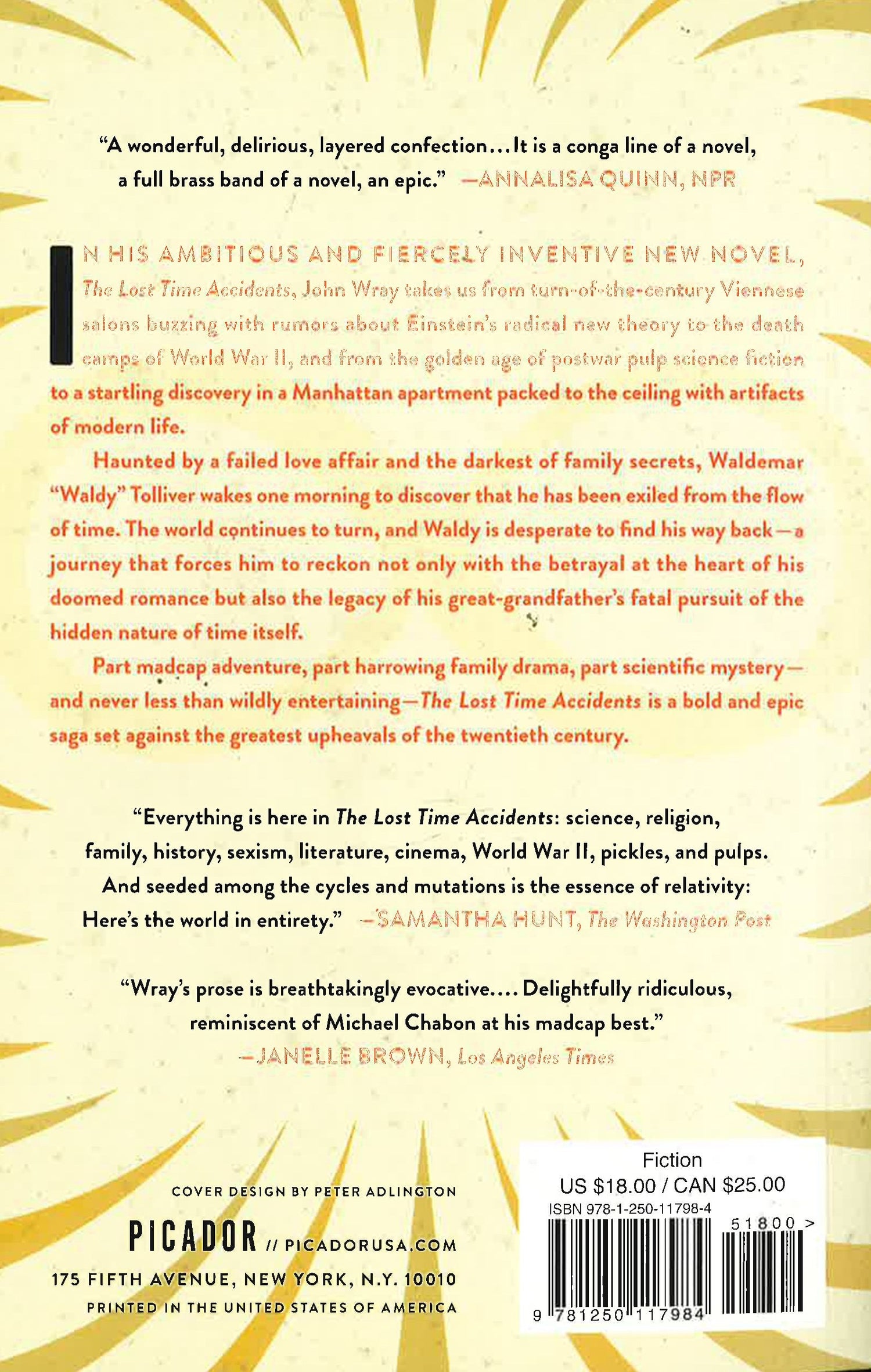 In his ambitious and fiercely inventive new novel, The Lost Time Accidents, John Wray takes us from turn-of-the-century Viennese salons buzzing with rumors about Einstein’s radical new theory to the death camps of World War Two, from the golden age of postwar pulp science fiction to a startling discovery in a Manhattan apartment packed to the ceiling with artifacts of modern life.Haunted by a failed love affair and the darkest of family secrets, Waldemar ‘Waldy’ Tolliver wakes one morning to discover that he has been exiled from the flow of time. The world continues to turn, and Waldy is desperate to find his way back--a journey that forces him to reckon not only with the betrayal at the heart of his doomed romance but also the legacy of his great-grandfather’s fatal pursuit of the hidden nature of time itself.Part madcap adventure, part harrowing family drama, part scientific mystery--and never less than wildly entertaining--The Lost Time Accidents is a bold and epic saga set against the greatest upheavals of the twentieth century.