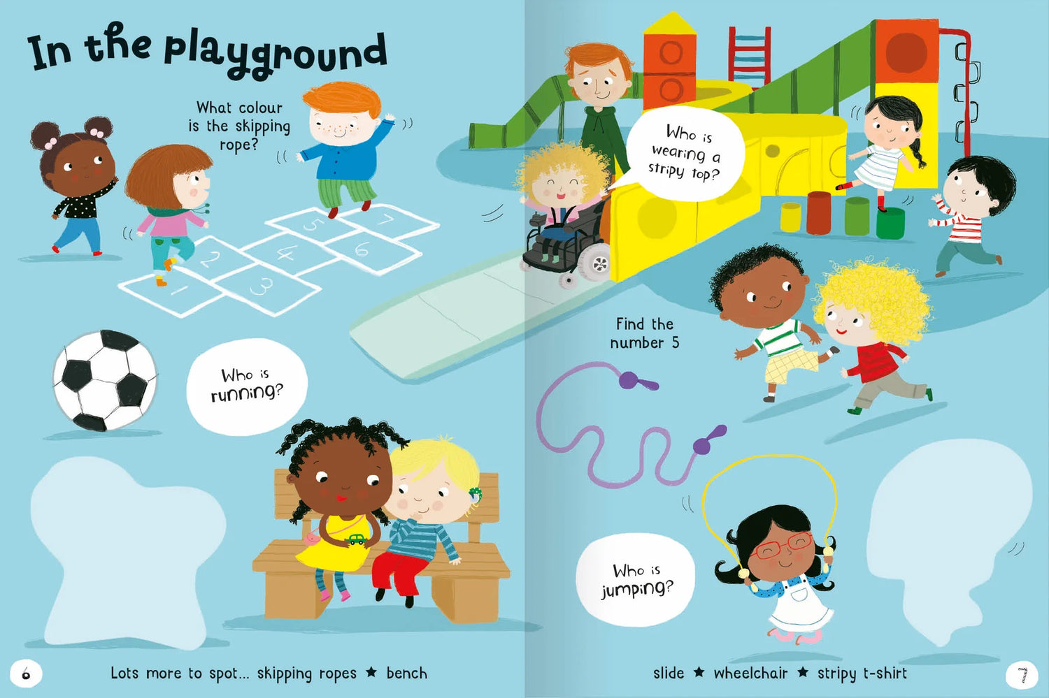 Little minds can experience an exciting day at school inside this colourful sticker book. Themed spreads – such as In the Classroom, Lunchtime, In the Playground and Making Music – present a wide range of different school settings and objects to talk about on every page. Children will love placing the big stickers to complete the brightly illustrated pages, and doing the spotting tasks, which explore colours, numbers, opposites and more.