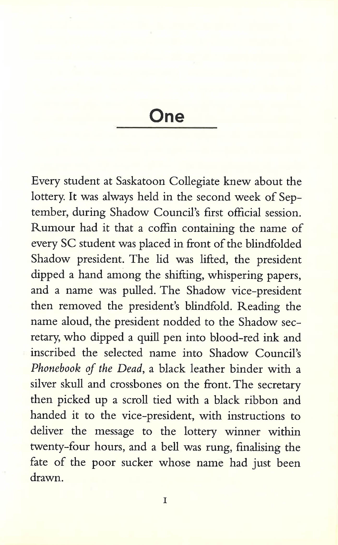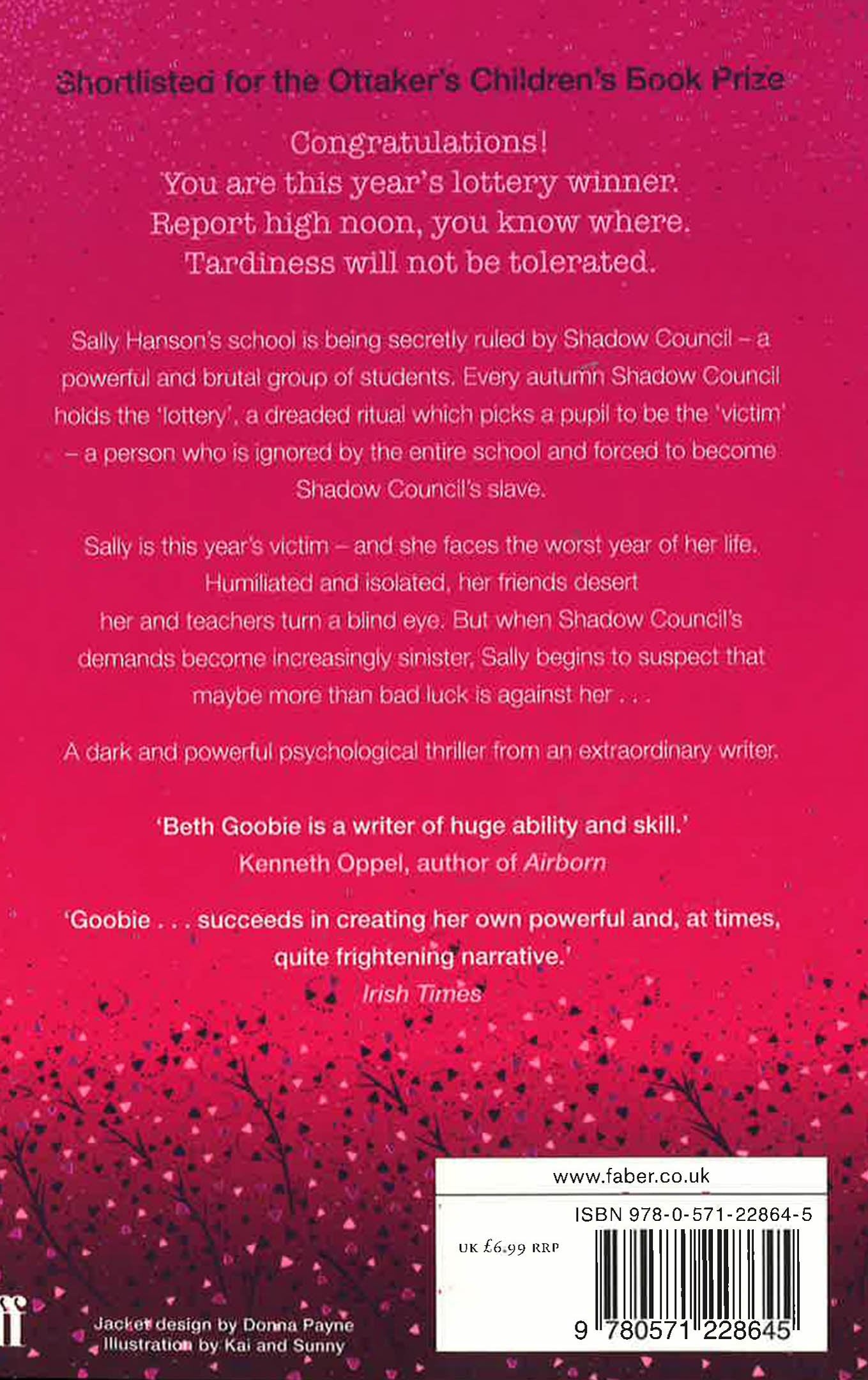 15-year-old Sally Hanson's school is secretly ruled by a group of students known as the 'Shadow Council'. At the beginning of every school year, the Shadow Council hold The Lottery, an infamous ritual in which a student is chosen to be the year's 'victim' - a person who is shunned by the entire school and forced to obey the Shadow Council's every wish. This year Sally is the Shadow Council's victim - and she is about to face the worst year of her life. Resistance is futile and loyal friends are ignoring her. However, Sally has been hiding a horrifying secret - a secret that threatens to overwhelm her as the betrayal and psychological torture grows.