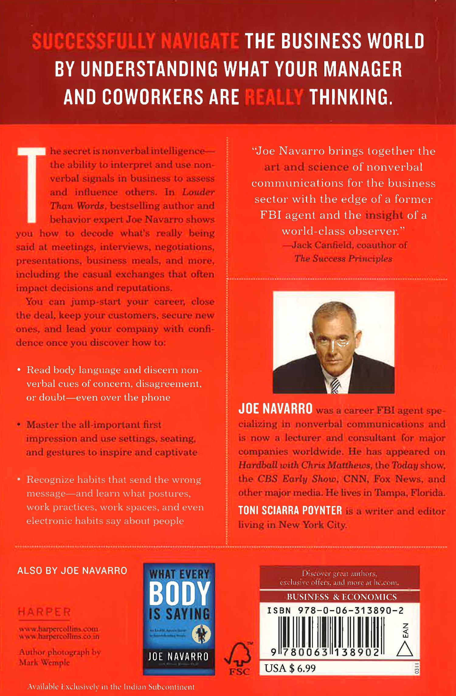 “Joe Navarro brings together the art and science of nonverbal communications for the business sector with the edge of a former FBI agent and the insight of a world-class observer.” — Jack Canfield, co-author of The Success Principles