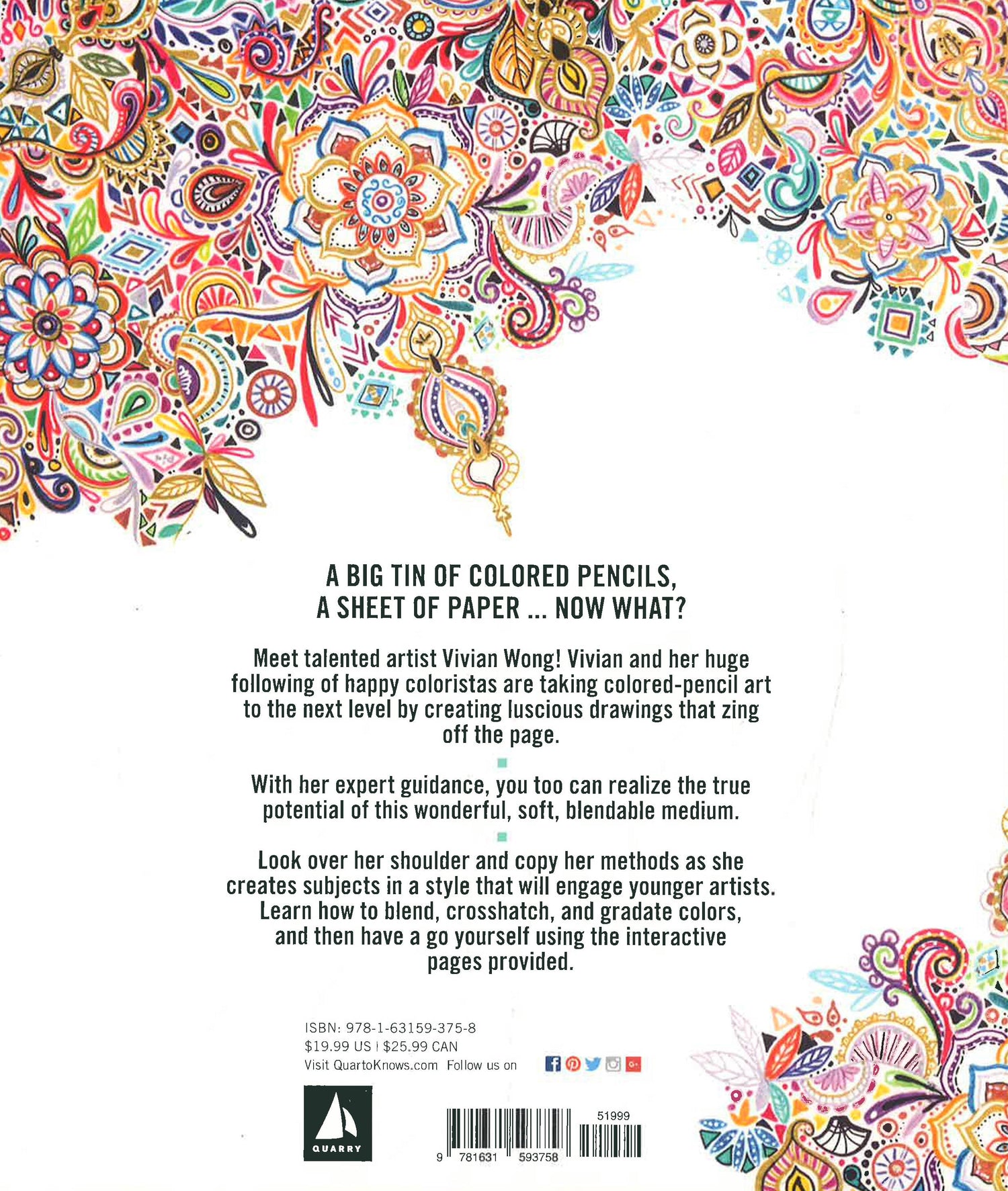 Vivian Wong shares her love of colored pencils and explains that one way "baby artists" improve their work is by copying what they see. Love Colored Pencils is designed to enable exactly this. *Named One of the 54 Best Colored Pencil Drawing Books of All Time by BookAuthority* Look over Vivian's shoulder as she demonstrates all the techniques you need to make luscious drawings in the wonderful, soft, blendable medium of colored pencil. On one side of each spread, Vivian demonstrates a technique or she colors in a subject, and on the opposite page or the next spread, you are encouraged to try it yourself, drawing directly in the book. Exercises throughout offer fun ways to explore drawing while being inspired by Vivian's popular and colorful drawing style. Vivian will teach you about:Holding your pencilPencil pressureHatching and crosshatchingStipplingScribblingBlendingColor mixingCreating tones with colorHow to color facial featuresAnd more!Practice your skills as you follow Vivian's simple instructions for drawing facial features, many different hairstyles and hair colors, an owl, a leopard, and a variety of flower types. This is a book for all levels of artists who want to explore this versatile and fun medium with a colorful and talented artist, baby step by baby step. With Vivian by your side, you can't go wrong!