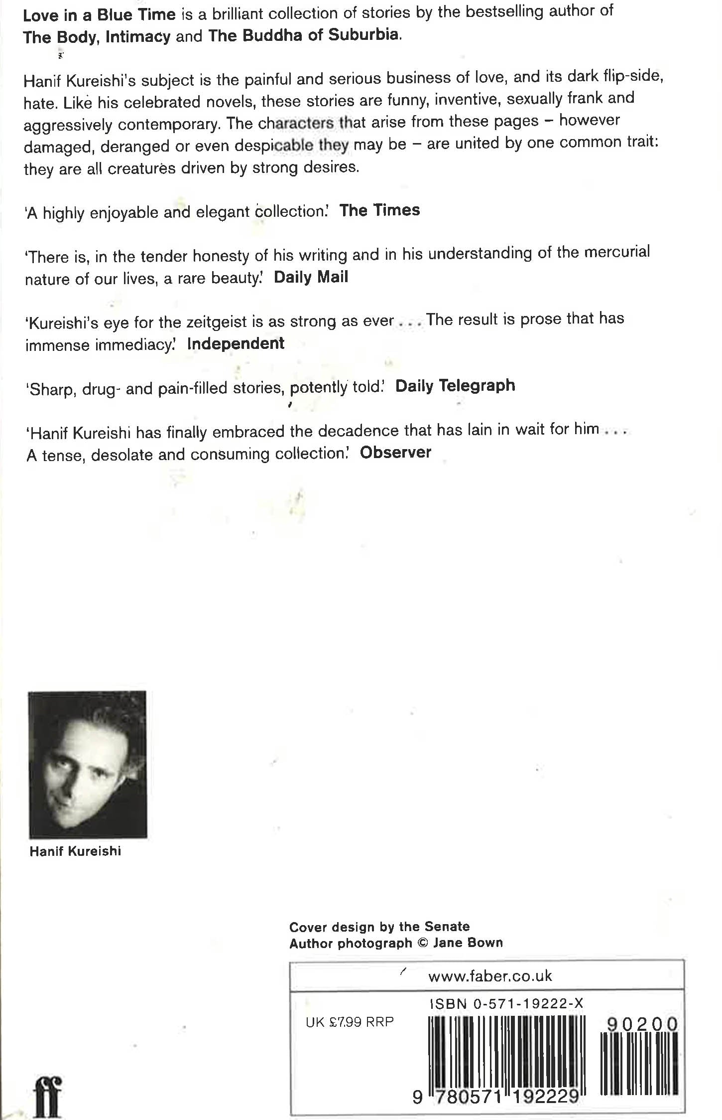 In these ten wry and exhilirating stories, Hanif Kureishi, author of "The Buddha of Suburbia, The Black Album," and of the screenplays for "My Beautiful Laundrette, Sammy and Rosie Get Laid, London Kills Me," and "My Son the Fanatic, brilliantly captures the passion and folly of the human comedy. Written over the span of a decade, "Love in a Blue Time" reveals the essence of a generation - from the liberating irreverence of the seventies to the dilemmas and disillusionments of the nineties.