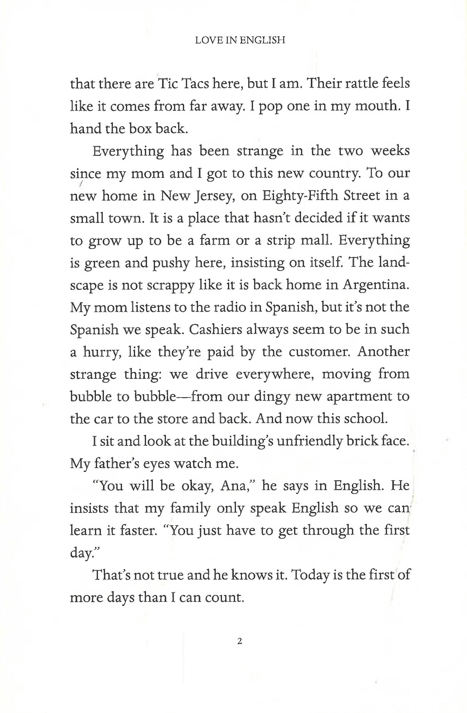 Sixteen-year-old Ana is a poet and a lover of language. Except that since she moved to New Jersey from Argentina, she can barely find the words to express how she feels.