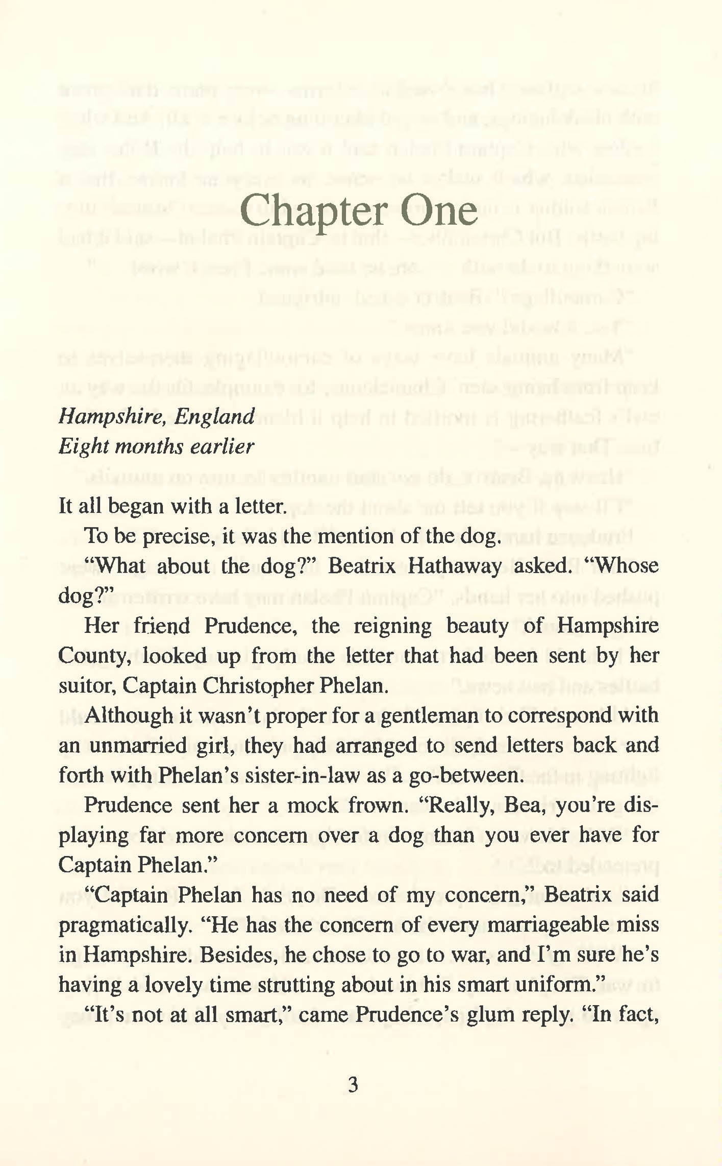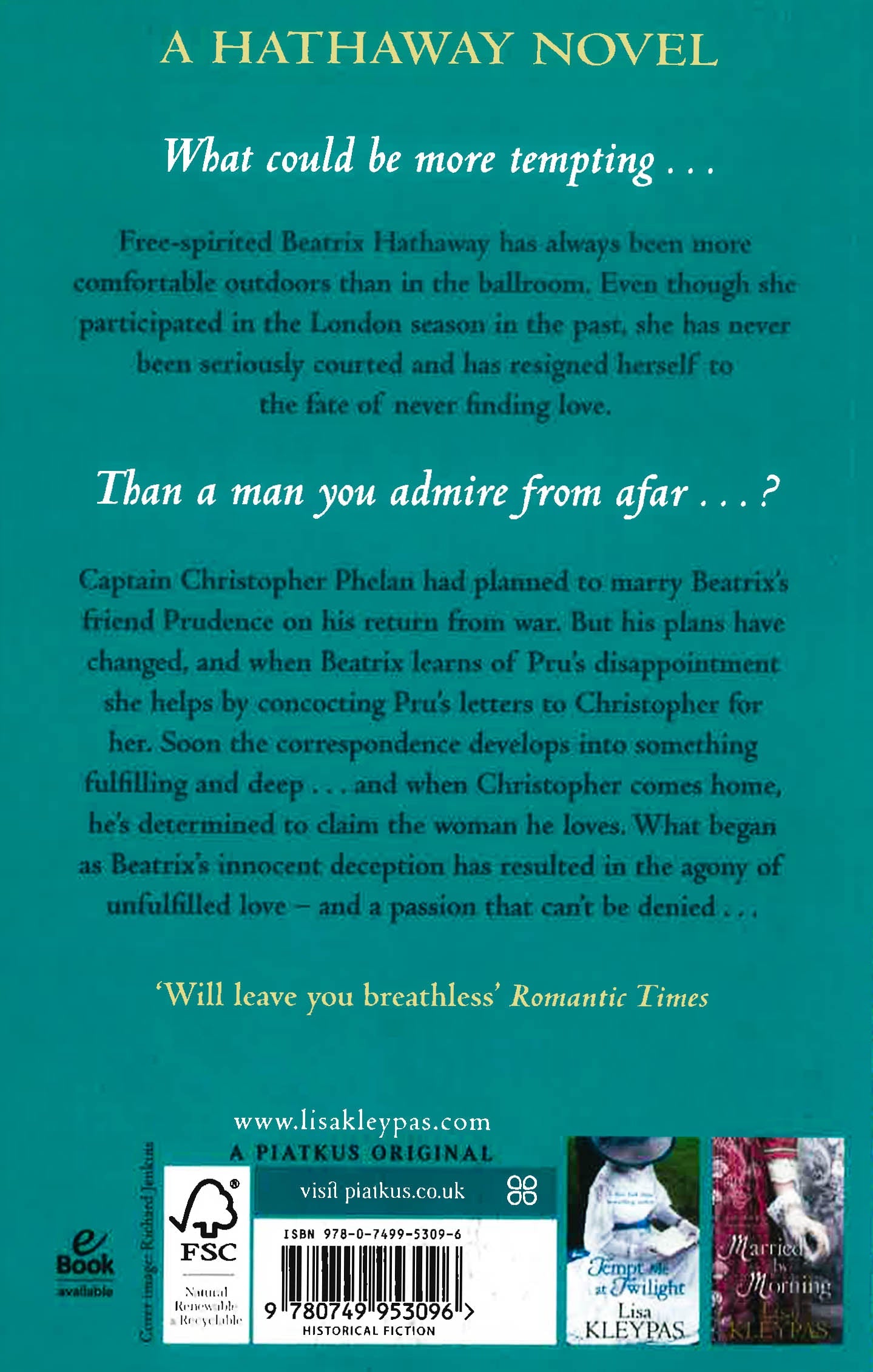 Captain Christopher Phelan is a handsome, daring soldier who plans to marry Beatrix's friend, the vivacious flirt Prudence Mercer, when he returns from fighting abroad. But, as he explains in his letters to Pru, life on the battlefield has darkened his soul - and it's becoming clear that Christopher won't come back as the same man. When Beatrix learns of Pru's disappointment, she decides to help by concocting Pru's letters to Christopher for her. Soon the correspondence between Beatrix and Christopher develops into something fulfilling and deep . . . and when Christopher comes home, he's determined to claim the woman he loves. What began as Beatrix's innocent deception has resulted in the agony of unfulfilled love - and a passion that can't be denied . . .