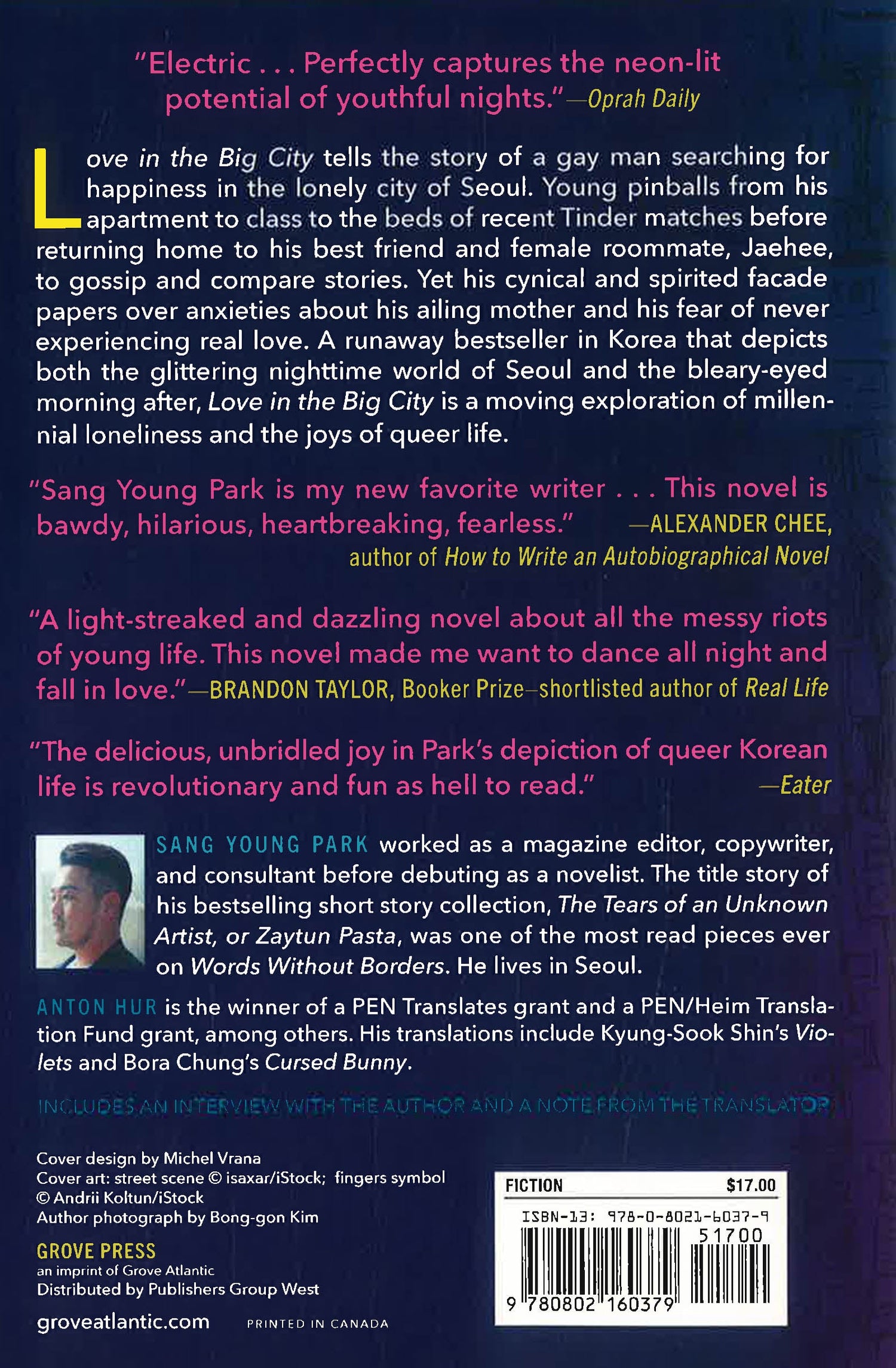 A funny, transporting, surprising, and poignant novel that was one of the highest-selling debuts of recent years in Korea, Love in the Big City tells the story of a young gay man searching for happiness in the lonely city of Seoul
