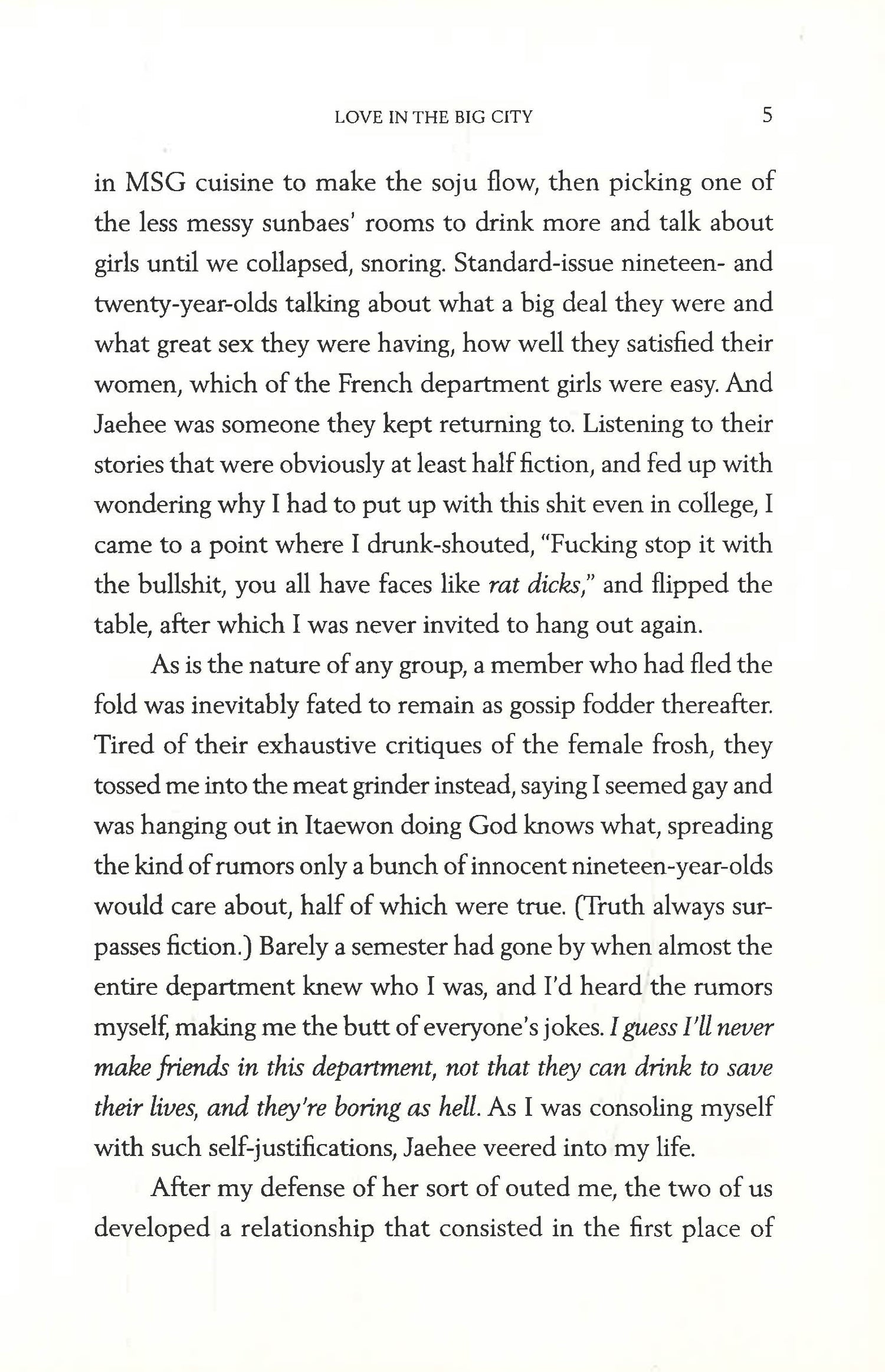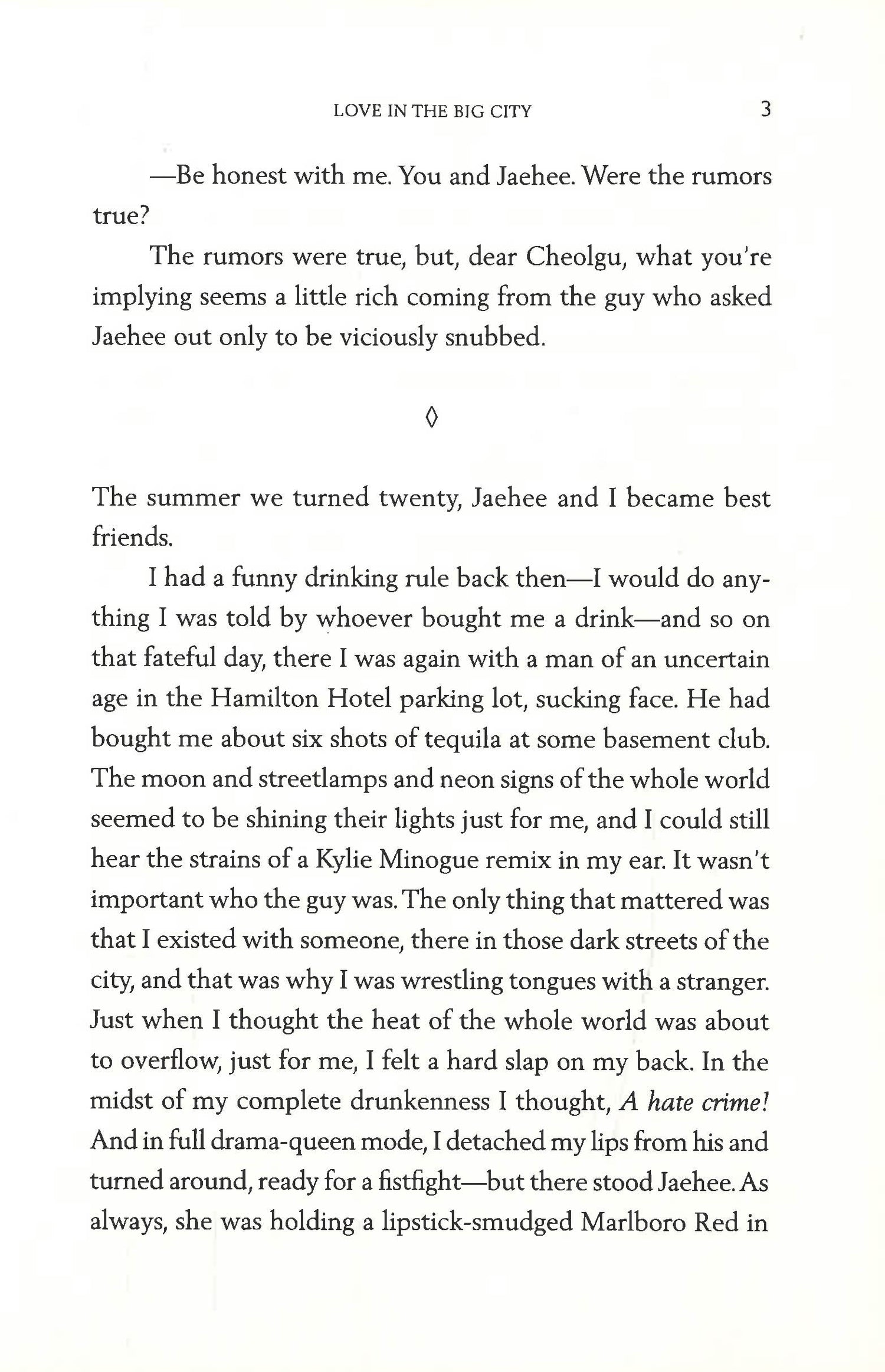 A brilliantly written novel that takes us into the glittering nighttime of Seoul and the bleary-eyed morning after with both humor and emotion, Love in the Big City is a wry portrait of millennial loneliness as well as the abundant joys of queer life.