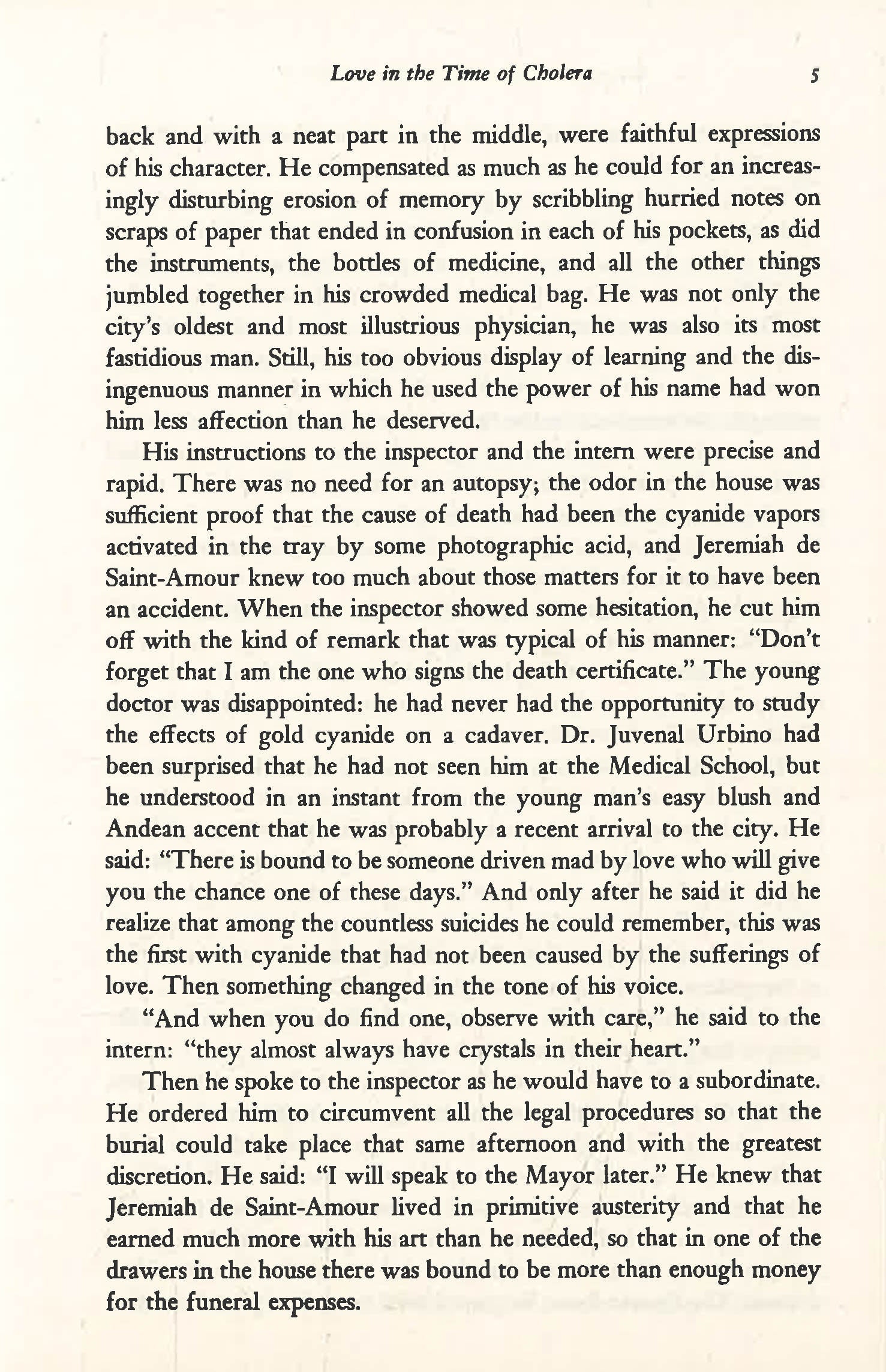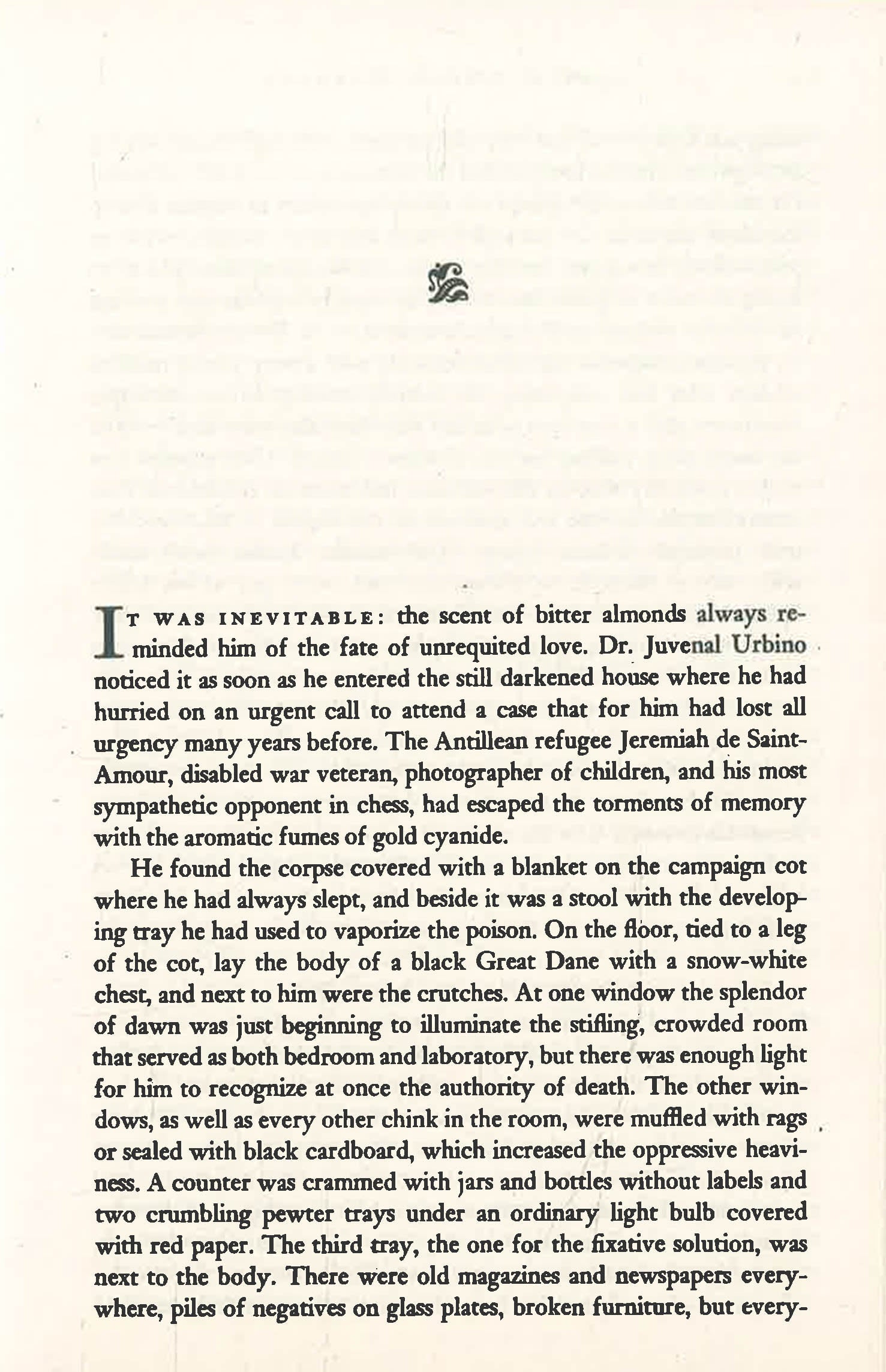 'It was inevitable: the scent of bitter almonds always reminded him of the fate of unrequited love'