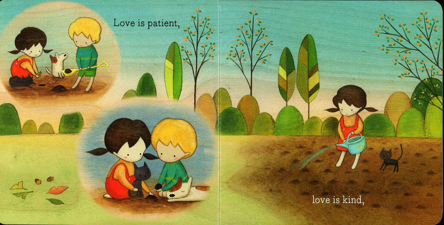 Featuring the same little girl from AH Creatures Great and Small, Naoko Stoop's charming companion volume contains the text from Corinthians 13: 4 - 8. Though often used at weddings, this verse also creates the perfect child-focused story about friendship, generosity and the permanence of love. Self-taught artist Stoop paints on wood planks purchased specifically for their unique character, so no canvas is ever the same.