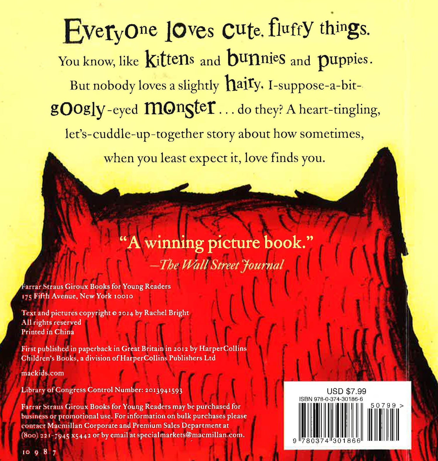 Love Monster is a slightly hairy monster trying to fit in with the cuddly residents of Cutesville. But as it turns out, it's hard to fit in with the cute and the fluffy when you're a googly-eyed monster. And so, Love Monster sets out to find someone who will love him just the way he is. His journey is not easy--he looks high, low, and even middle-ish. But as he soon finds out, in the blink of a googly eye, love can find you when you least expect it.