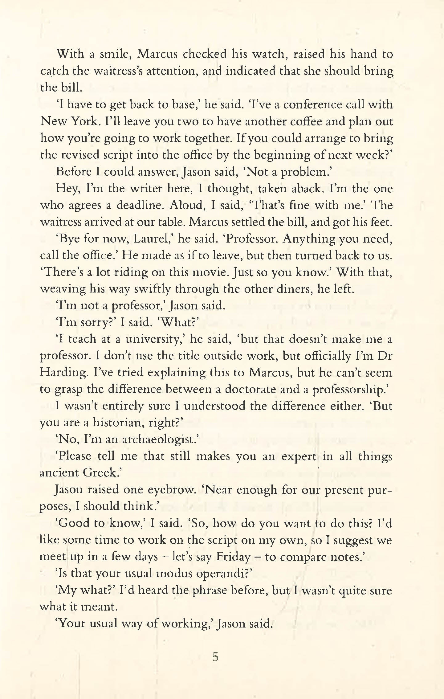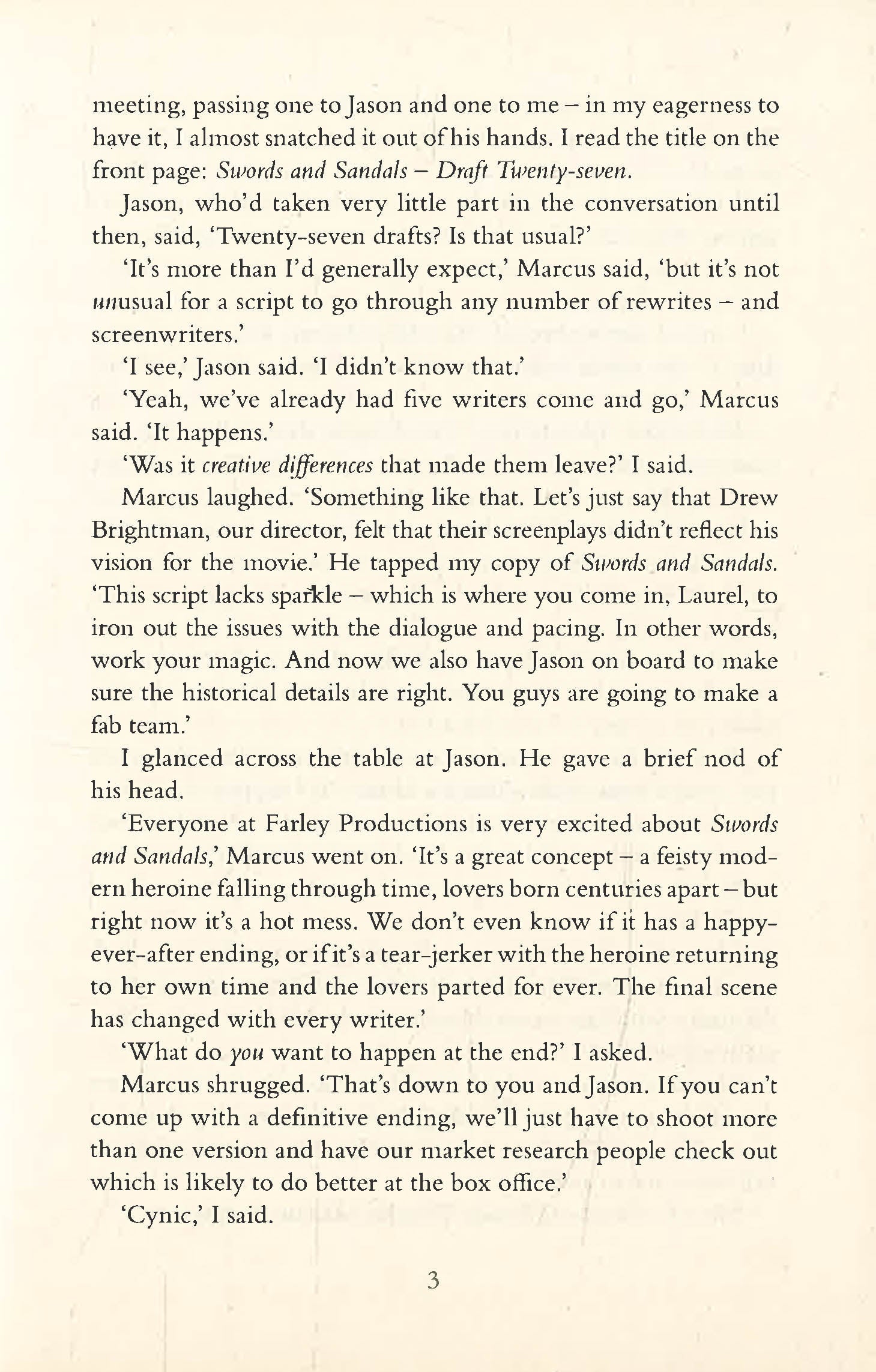 When Laurel Martin is hired to rewrite the script for a new timeslip blockbuster, she expects the historical advisor hired by the studio to be an elderly academic who won't interfere too much with her writing. But when she meets Professor Jason Harding, a young and unexpectedly handsome archaeologist who has some ideas of his own about the script, she realises the job isn't going to be as simple as she first thought.