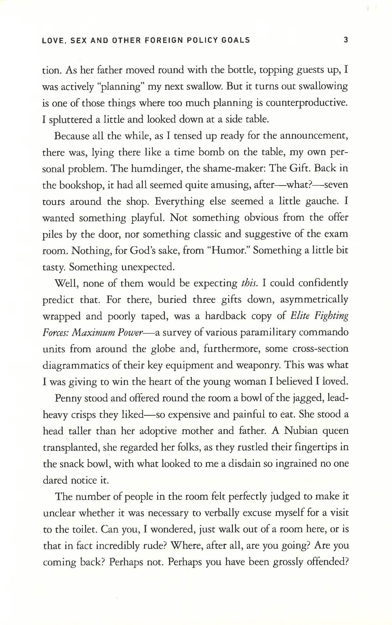 It's 1994, and war rages on in Yugoslavia--Sarajevo is under siege, and Bosnia's different ethnic groups are battling for control of the newly independent country. Hundreds of miles away, in a posh dining room in west London, Andrew is in a similarly precarious situation: the fine balancing act of breathing, blinking, and sipping champagne at the same time. Penny, who may be the love of his life, is about to make the Great Announcement to her parents: that she, Andrew, and a handful of other young idealists are headed to Bosnia to stop the war by performing peace plays from the back of their van. But more important than peace--does Penny like Andrew, too? Or does she like Simon, who Andrew concedes is "essentially me, only better"? Will this trip across Europe finally bring them together, or will Andrew die in a minefield? And just how long will it take the gang to figure out that Andrew does not, in fact, speak Serbo-Croat? From one of England's most lauded comedy writers, Love, Sex, and Other Foreign Policy Goals is a satiric, absurd, and laugh-out-loud romp about tenderhearted, misguided dilettantes traveling through war-torn Europe, with nothing but a half-written script to protect them.