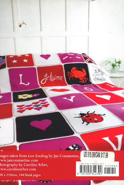 Themed on some of Jan Constantine's most iconic embroidery collections - Bugs & Beasts, Love and Flags - these pretty notebooks are the perfect size to carry in your handbag for making lists and notes when you are out and about, but they are also substantial enough to keep on your desk at home or work. With half lined paper and half plain, the notebooks are great for both lists and sketches. You may wish to use them specifically for your sewing projects - for keeping a record of fabrics, threads, measurements and patterns, for example, and for jotting down ideas and planning your own creations inspired by the beautiful photographs of some of Jan Constantine's most colourful applique and hand-embroidery designs. BUGS & BEASTS - Creatures from the garden and the seaside are an endless source of fascination, and ladybirds, butterflies, crabs and lobsters often feature in Jan's exquisite embroidery. LOVE - A perennial favourite subject, Love, Je t'aime, hearts and lips are recurring themes in Jan's colourful applique designs.
