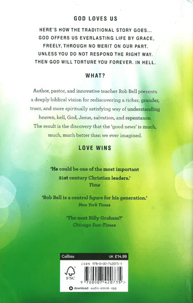 Bestselling author Rob Bell returns with a provocative new book which gets to the heart of questions about life and death. His perspective, encapsulated by his famous slogan 'love wins,, will surprise and challenge both Christians and atheists, and will inspire people of all faiths and none. Millions of Christians have struggled with how to reconcile God's love and God's judgement: Has God created billions of people over thousands of years only to select a few to go to heaven and everyone else to suffer forever in hell? Is this acceptable to God? How is this "good news"? Troubling questions-so troubling that many have lost their faith because of them. Others only whisper the questions to themselves, fearing or being taught that they might lose their faith and their church if they ask them out loud. But what if these questions trouble us for good reason? What if the story of heaven and hell we have been taught is not, in fact, what the Bible teaches? What if what Jesus meant by heaven, hell, and salvation are very different from how we have come to understand them? What if it is God who wants us to face these questions? Author, pastor, and innovative teacher Rob Bell presents a deeply biblical vision for rediscovering a richer, grander, truer, and more spiritually satisfying way of understanding heaven, hell, God, Jesus, salvation, and repentance. The result is the discovery that the "good news" is much, much better than we ever imagined. Love wins.