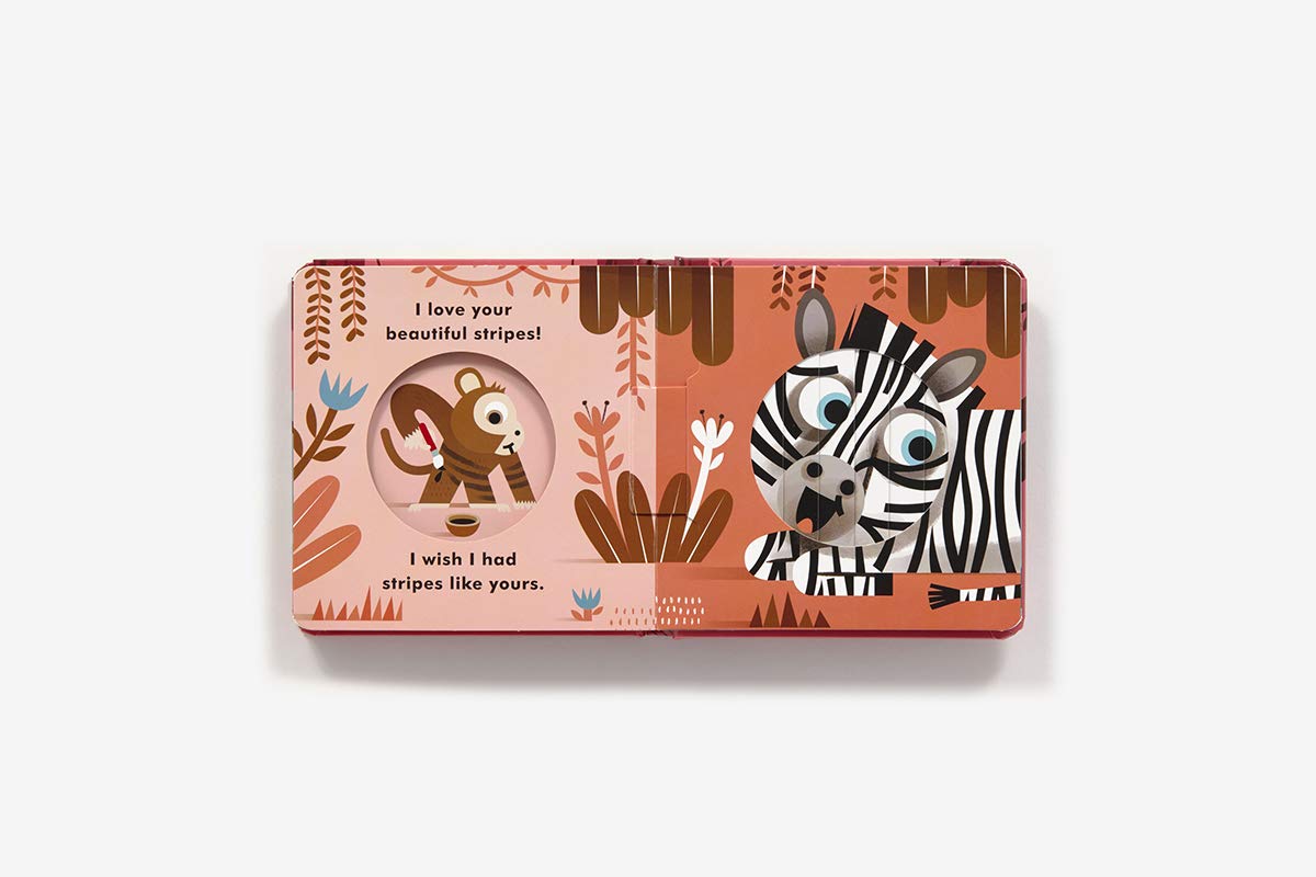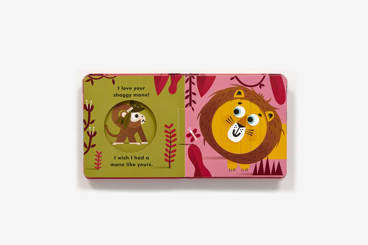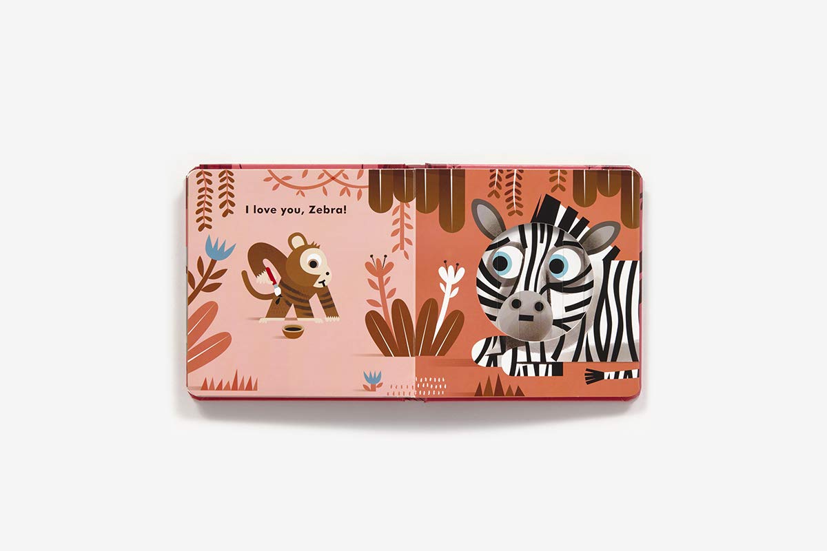 "I love you!" is the refrain on each spread of this joyful story. Readers will delight in seeing new faces appear and then change when the page is turned, thanks to the magical venetian blind element built into the book.