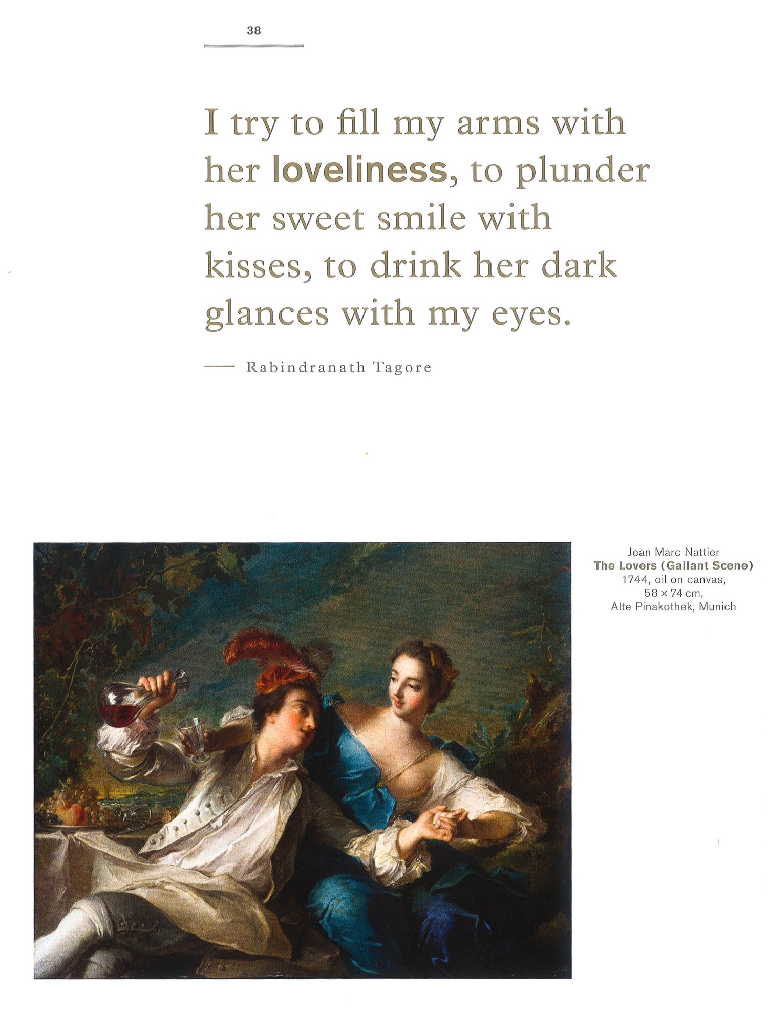 How many ways can you paint a kiss? Ask Picasso, Lichtenstein, Toulouse-Lautrec, Klimt, and Fragonard. Rediscover mythology's great love stories through the works of Botticelli, Correggio, Titian, and Canova. Meet ordinary and extraordinary couples in paintings by Kahlo, Van Eyck, Rubens, Rembrandt, Freud, and Rossetti. These are just some of the bounty of artists collected in this glorious book that features brilliantly coloured reproductions and love-inspired writings. Organized to show the progression of love from first meeting to marriage, this exquisite volume travels over the centuries through various artistic traditions. The stories these artists tell are as varied as the works themselves: sentimental, tragic, intellectual, ironic, sensual, and comic. For lovers of art, or just lovers, this book gloriously illustrates the endless facets of love.