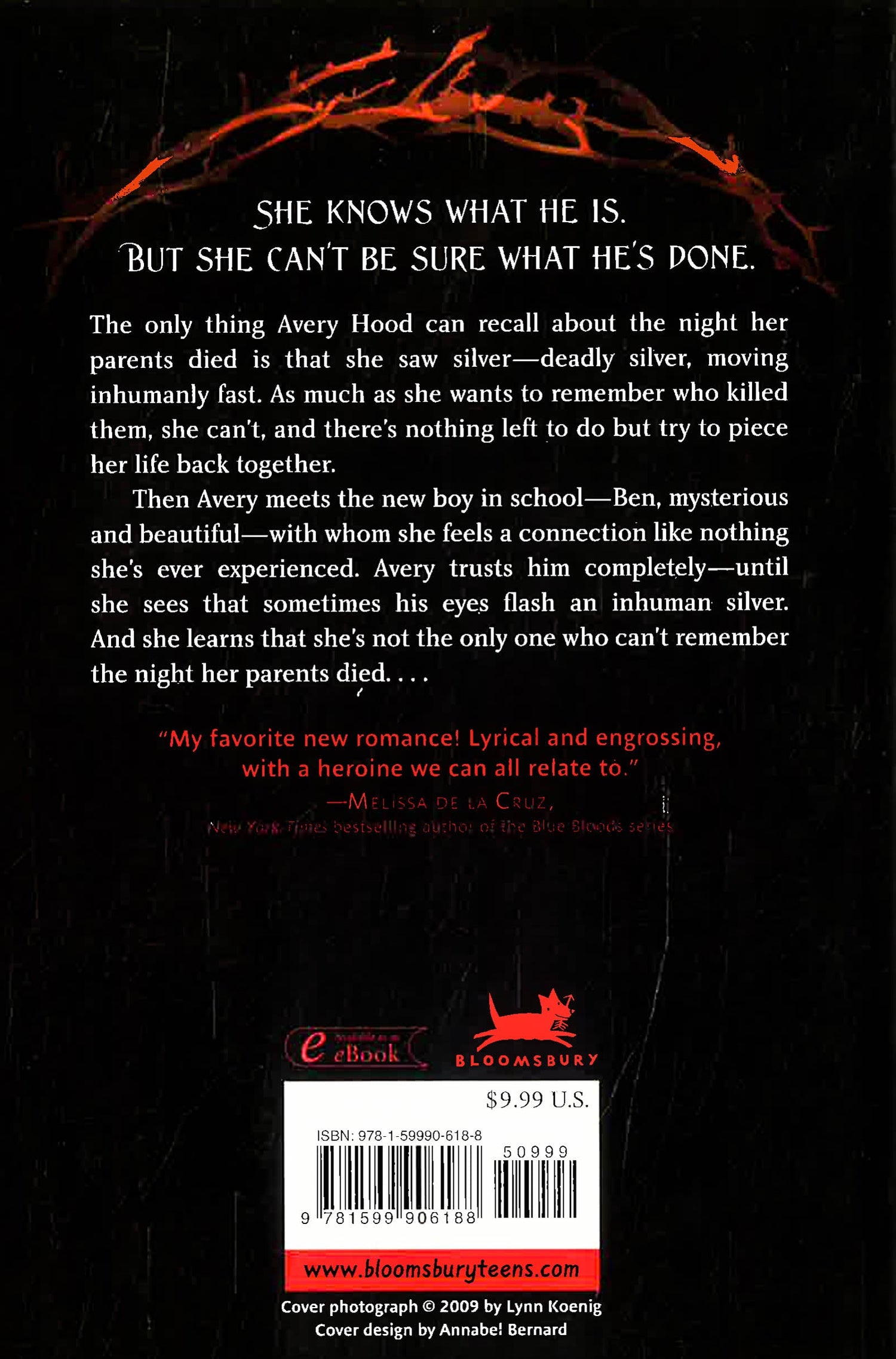 Avery witnessed her parents' death-but as much as she wants to remember who killed them, her mind is a blank. Then Avery meets Ben, mysterious and beautiful, with whom she feels an intense connection. When Ben reveals he's a werewolf, Avery still trusts him-until she learns that he, too, can't remember the night her parents died. This must-read for teen paranormal fans combines the breathless romance of Twilight with a moving tale of loss-and a compelling mystery to boot.