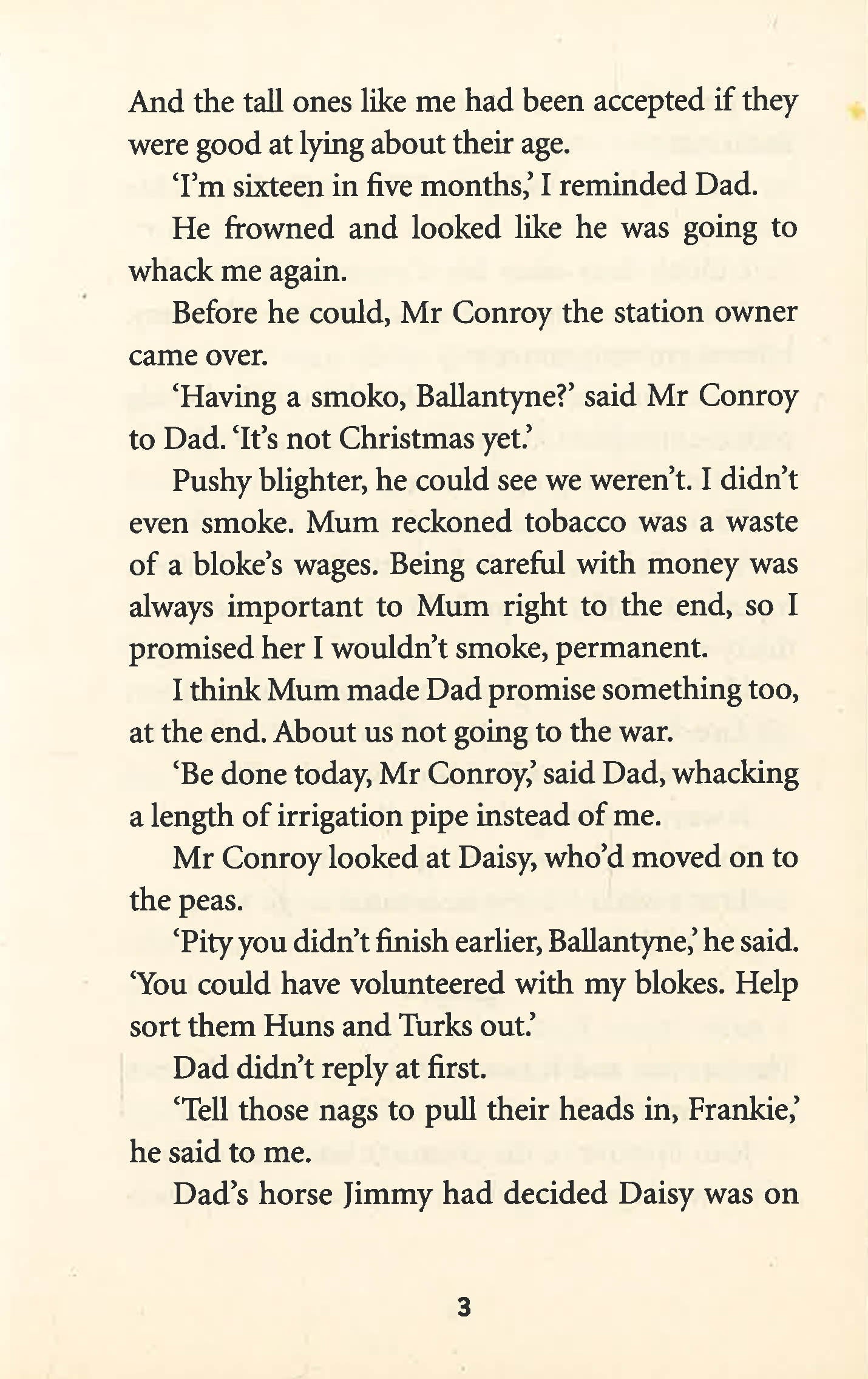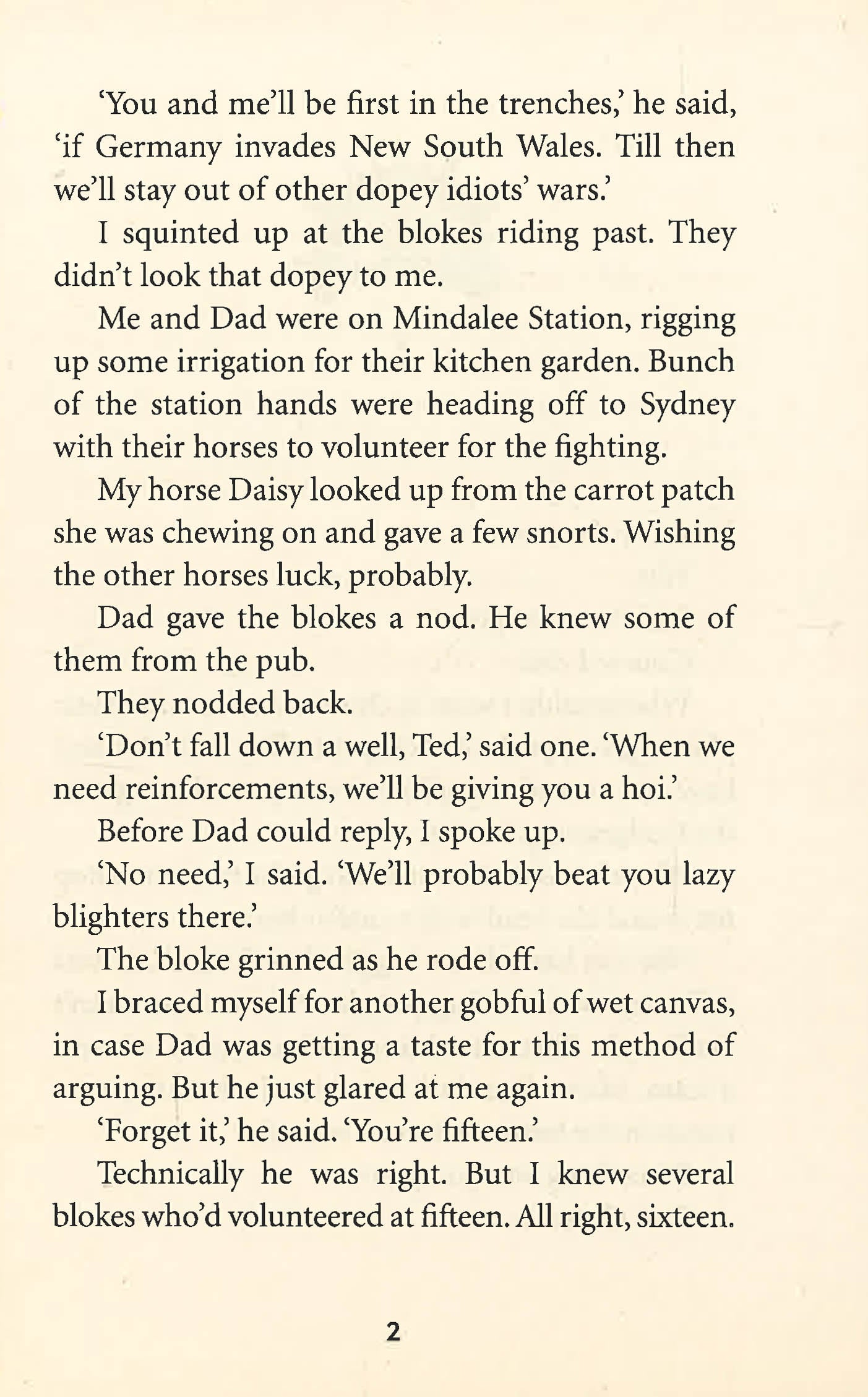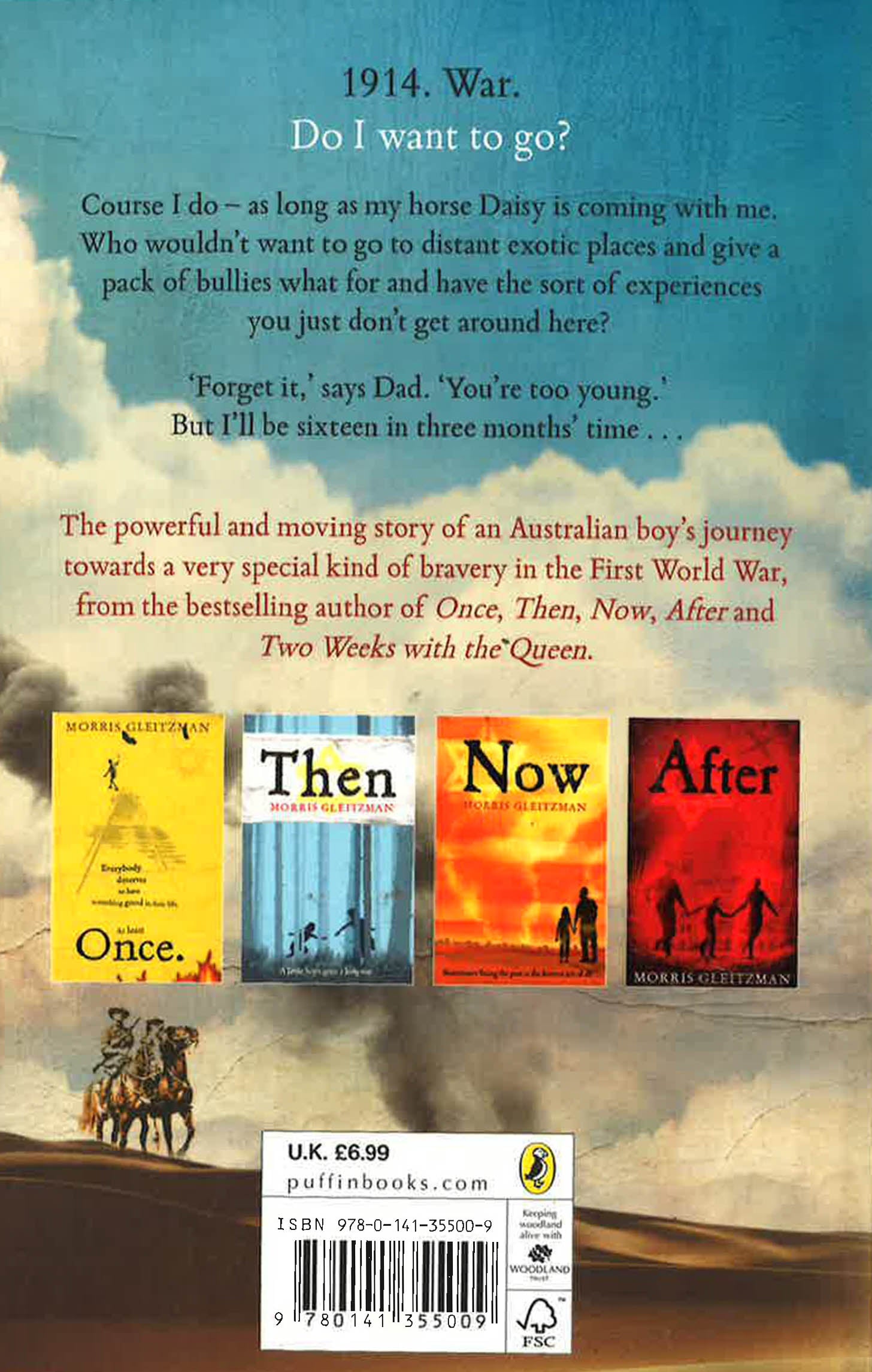 The story was inspired by Michael Morpurgo's international bestseller War Horse and is closely based on historical record. Morris Gleitzman is the author of the highly acclaimed war novels Once, Then, Now and After..