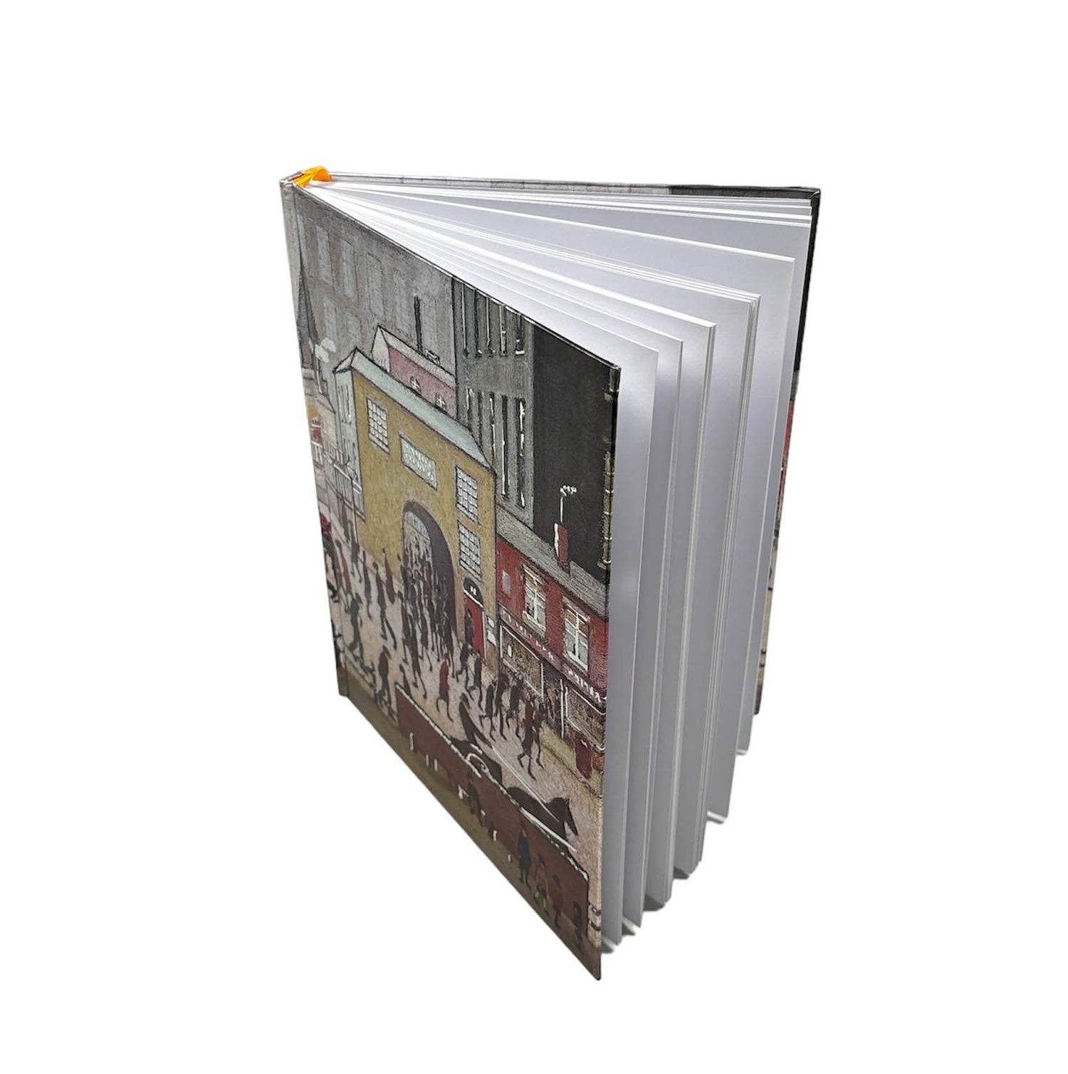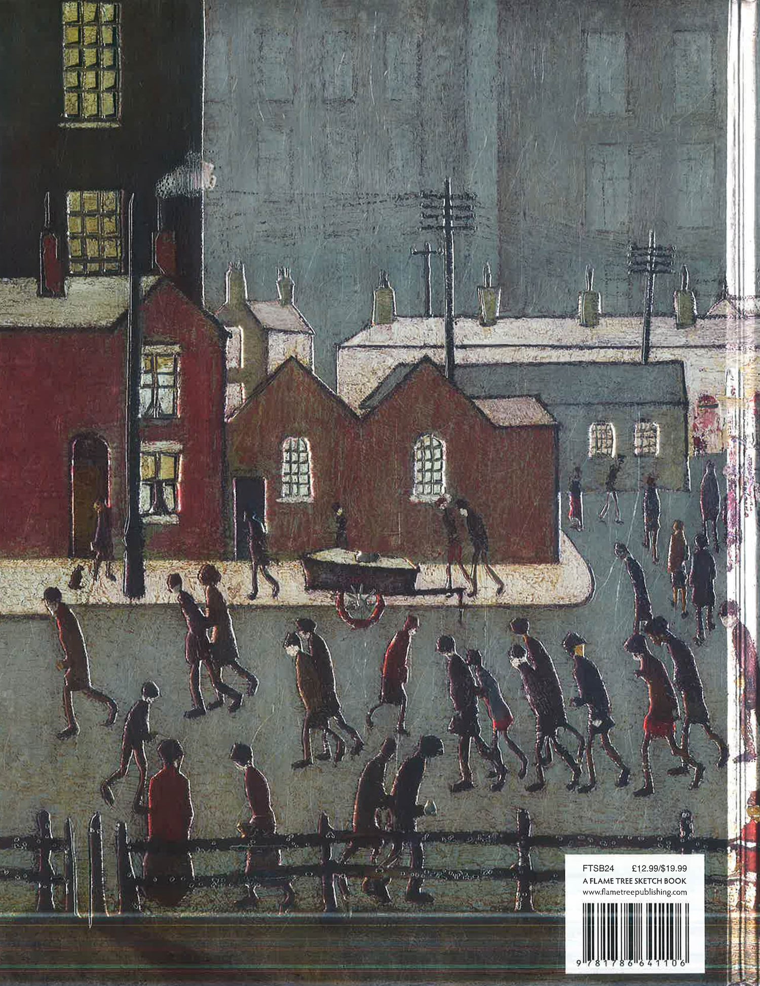 Part of a series of exciting and luxurious Flame Tree Sketch Books Combining high-quality production with magnificent fine art, the covers are printed on foil in five colours, embossed, then foil stamped. The thick paper stock makes them perfect for sketching and drawing. These are perfect for personal use and make a dazzling gift. This example features L.S Lowry's Coming from the Mill