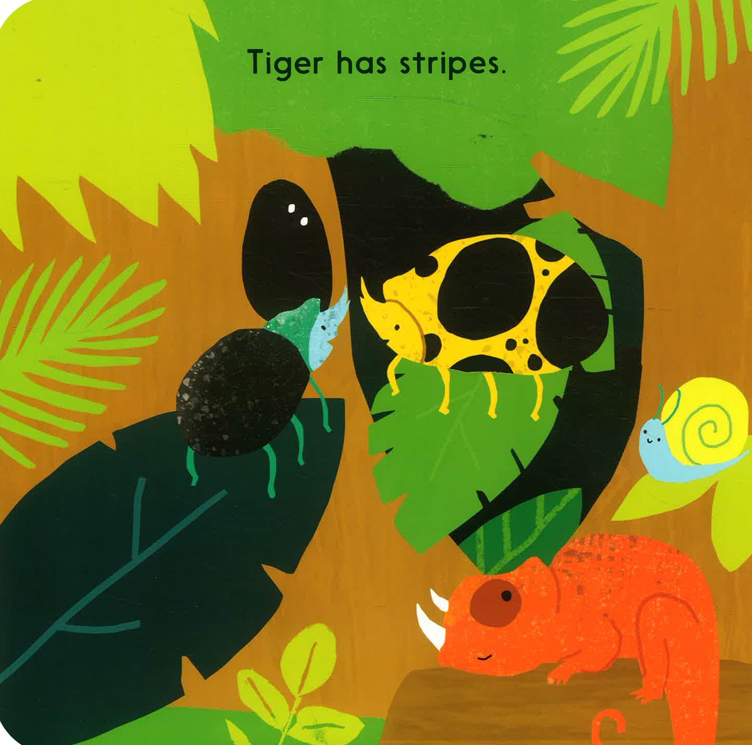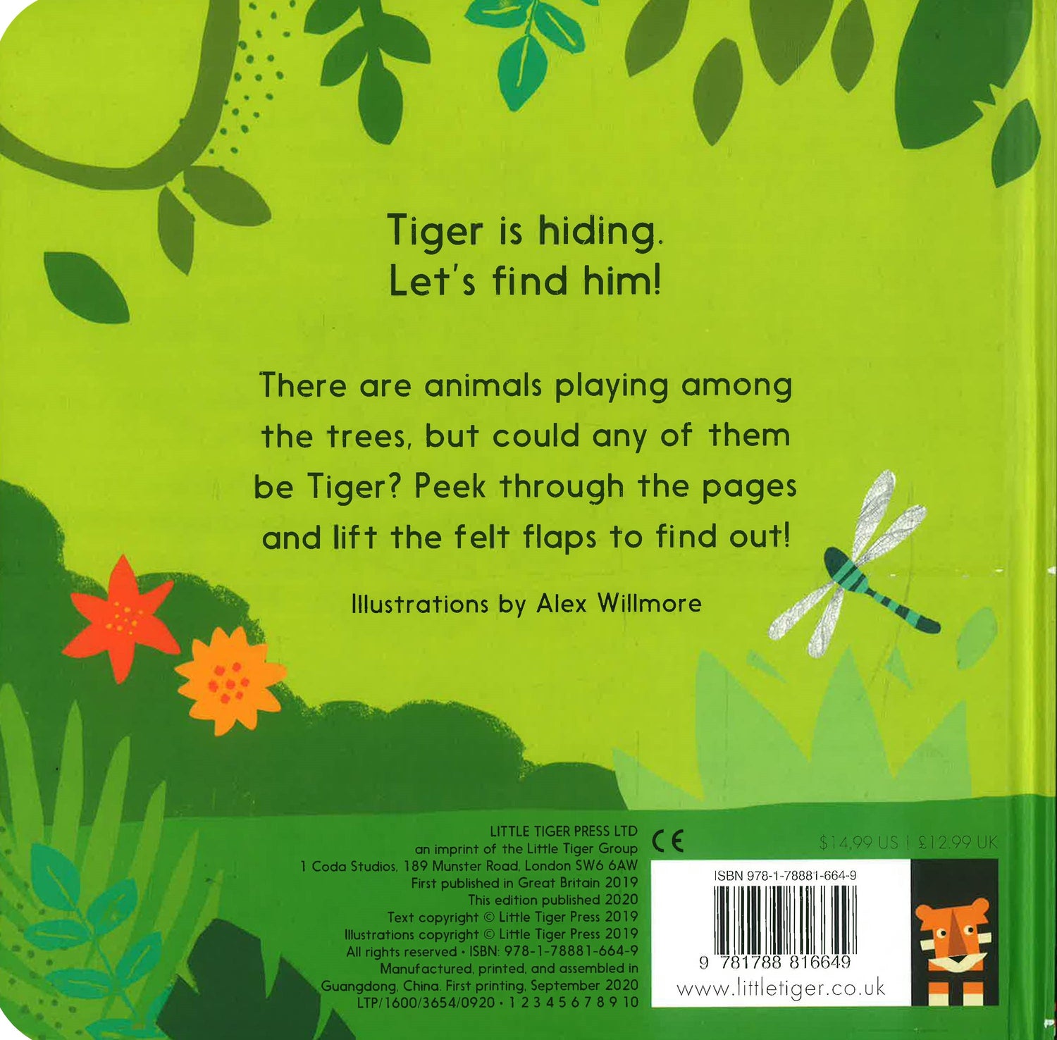 There are animals playing among the trees, but could any of them be Tiger? Peek through the pages and lift the felt flaps to fin