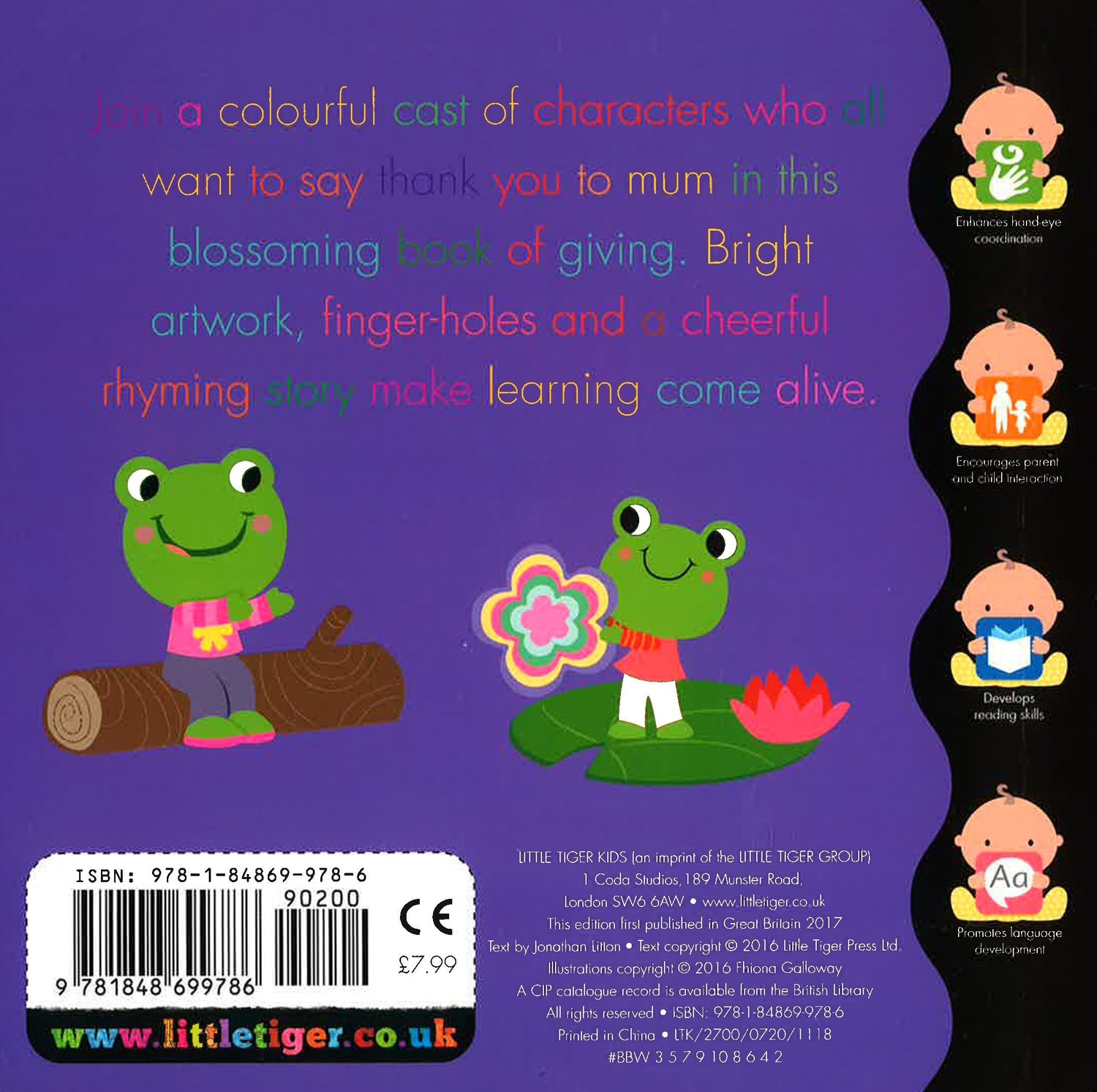 Join a colorful cast of characters who all want to say thank you to mum in this blossoming book of giving. Brigt artwoek, finger-holes and a cheerful rhyming story make learning come alive