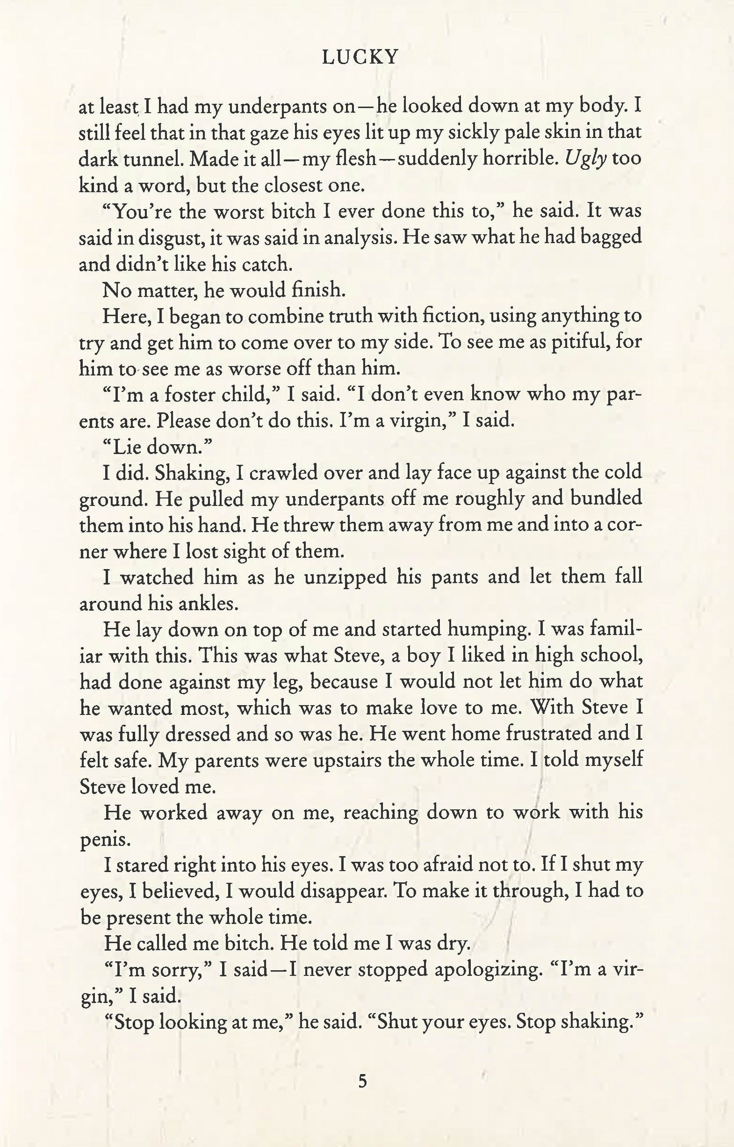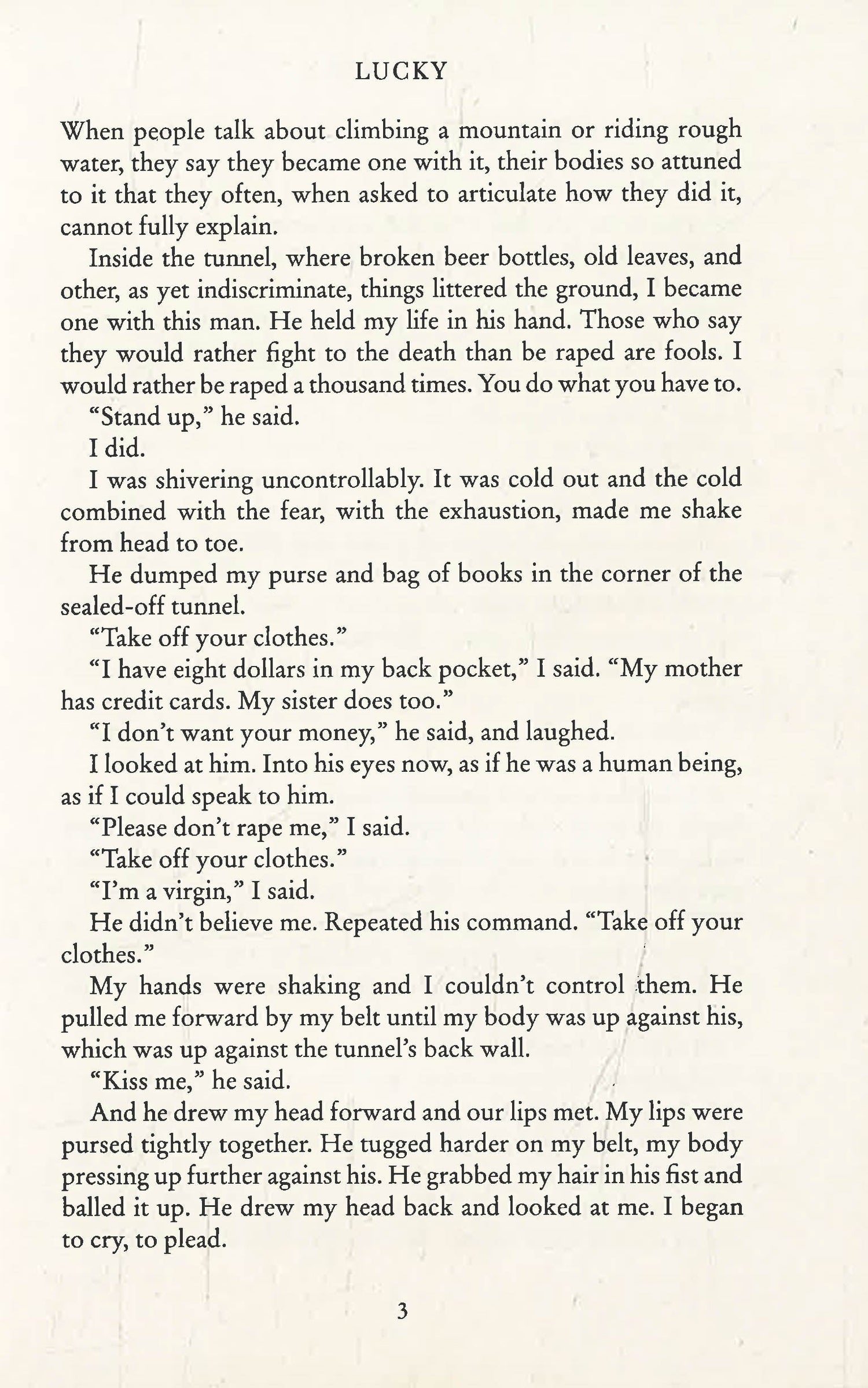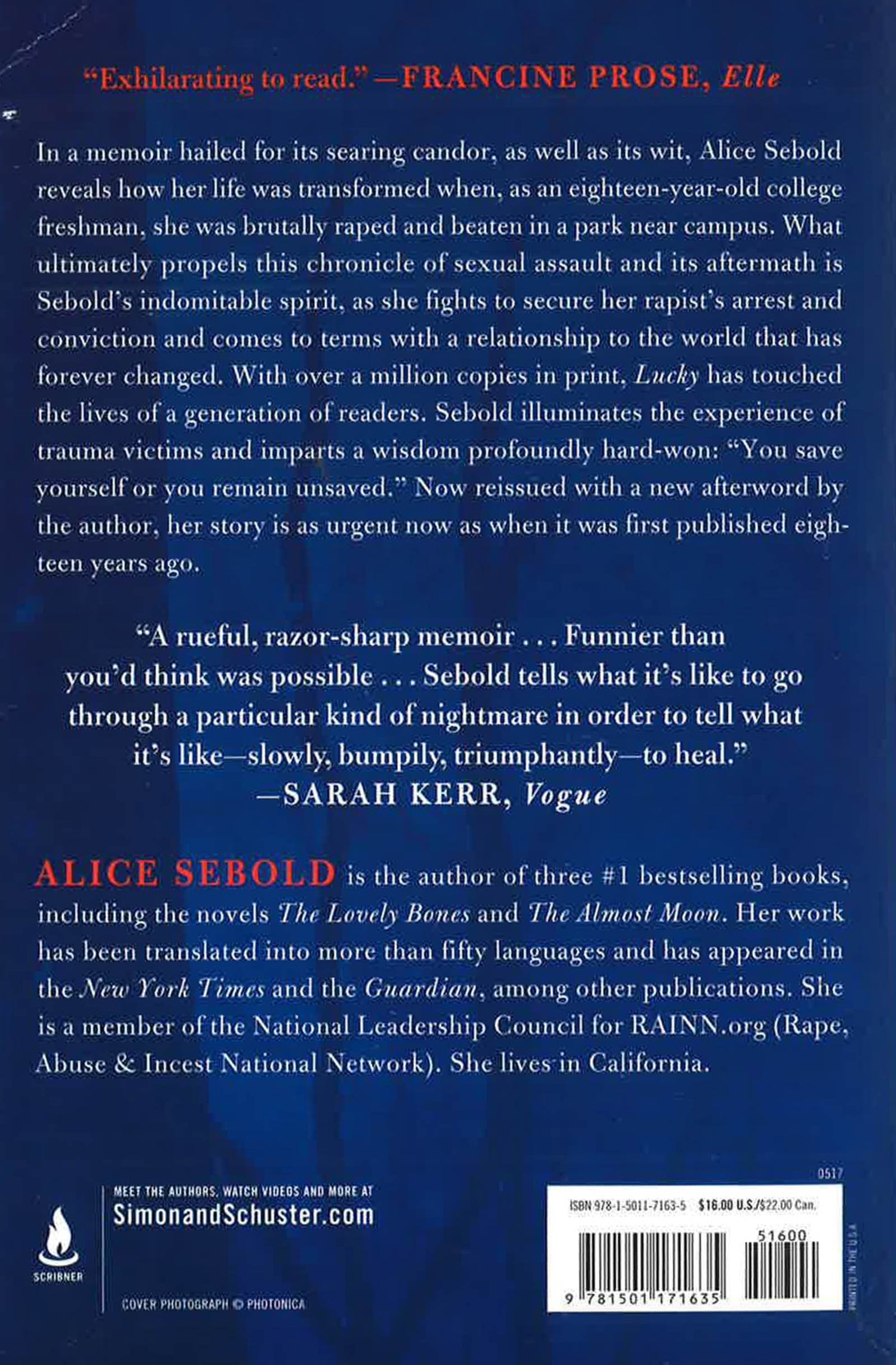 In a memoir hailed for its searing candor and wit, Alice Sebold reveals how her life was utterly transformed when, as an eighteen-year-old college freshman, she was brutally raped and beaten in a park near campus. What propels this chronicle of her recovery is Sebold's indomitable spirit - as she struggles for understanding; as her dazed family and friends sometimes bungle their efforts to provide comfort and support; and as, ultimately, she triumphs, managing through grit and coincidence to help secure her attacker's arrest and conviction. In a narrative by turns disturbing, thrilling, and inspiring, Alice Sebold illuminates the experience of trauma victims even as she imparts wisdom profoundly hard-won: "You save yourself or you remain unsaved."