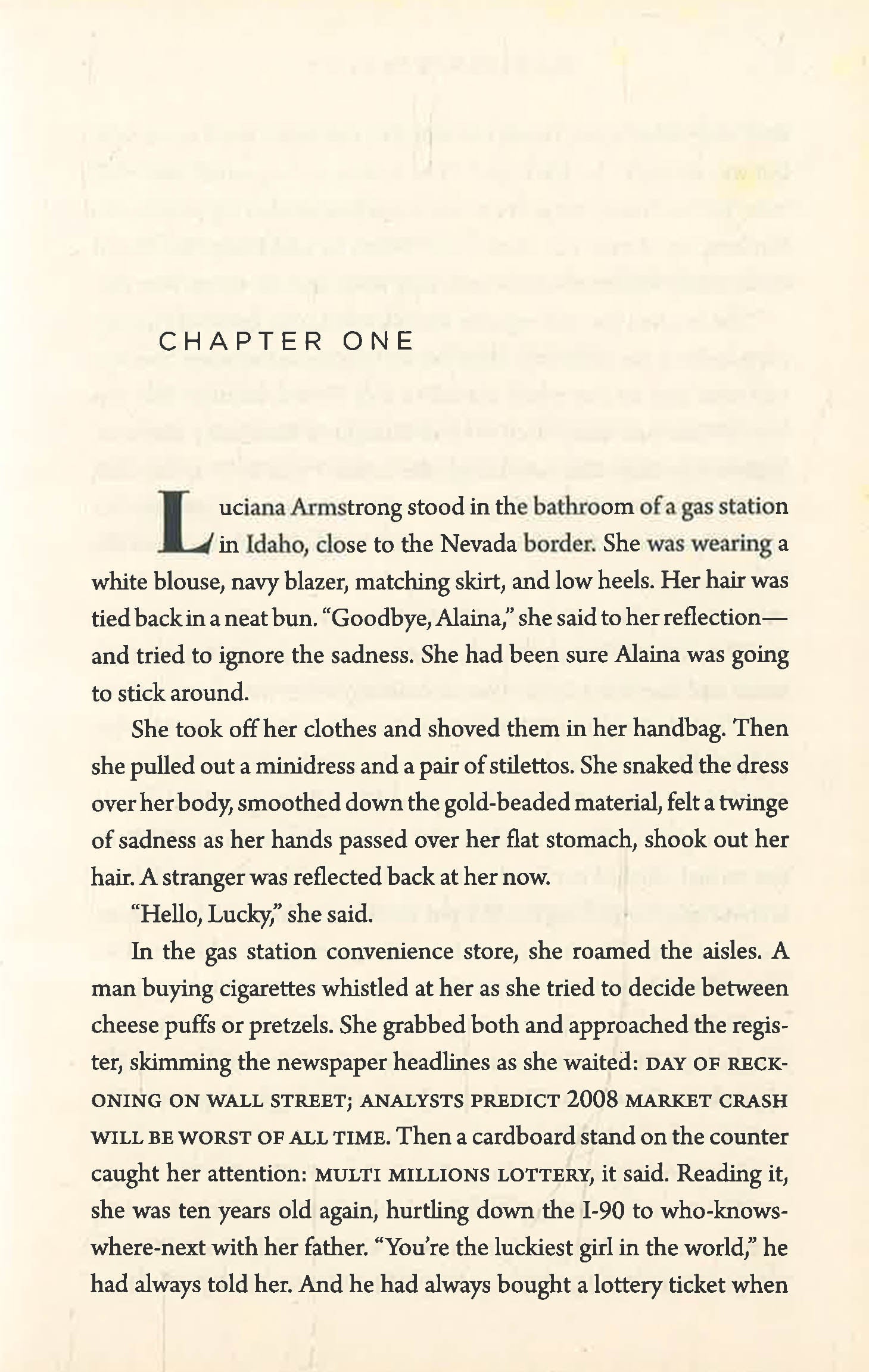 Lucky Armstrong is tough, talented and in real trouble. Having just pulled off a million-dollar heist with her boyfriend, she's preparing to start a brand new life, complete with new identity, when everything goes sideways. Suddenly Lucky finds herself completely alone, without the help of either her father or her boyfriend, the two figures from whom she's learned the art of the scam.