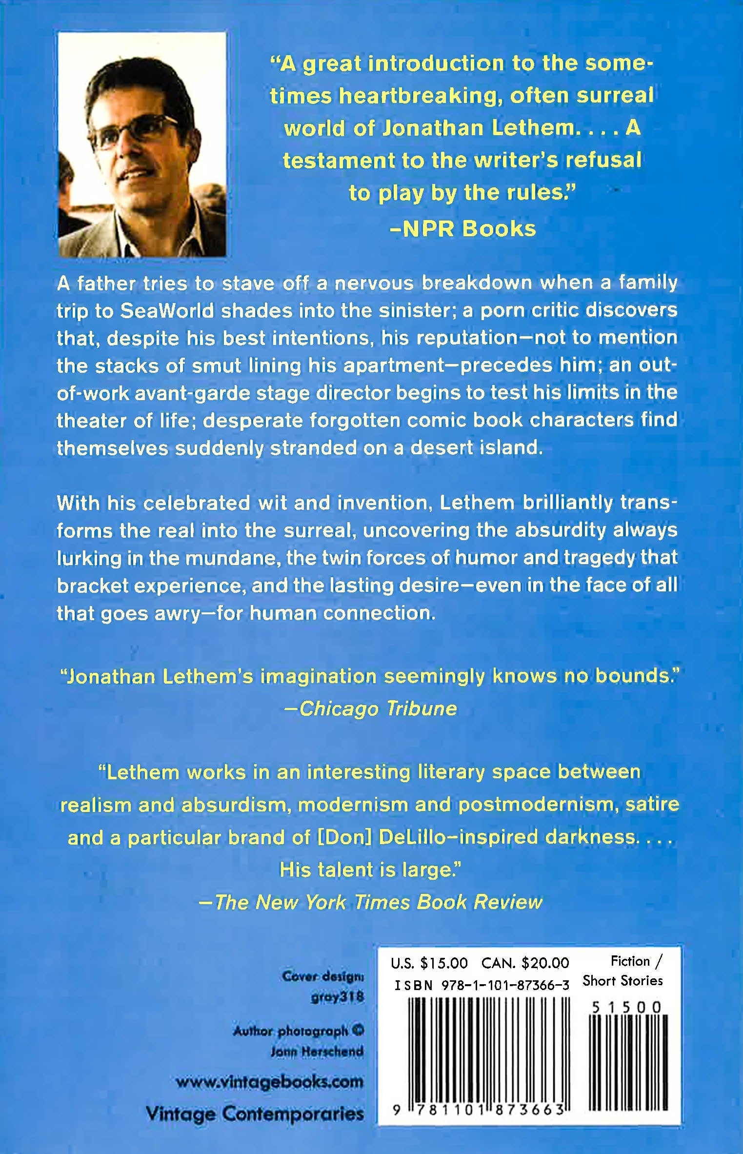 A father tries to stave off a nervous breakdown when a family trip to SeaWorld shades into the sinister; a porn critic discovers that, despite his best intentions, his reputation--not to mention the stacks of smut lining his apartment--precedes him; an out-of-work avant-garde stage director begins to test his limits in the theater of life; desperate forgotten comic book characters find themselves suddenly stranded on a desert island. With his celebrated wit and invention, Lethem brilliantly transforms the real into the surreal, uncovering the absurdity always lurking in the mundane, the twin forces of humor and tragedy that bracket experience, and the lasting desire--even in the face of all that goes awry--for human connection.