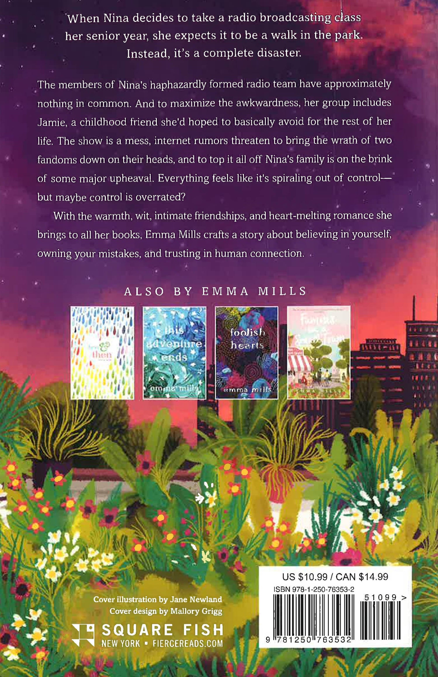 Emma Mills is the author of First & Then, This Adventure Ends, Foolish Hearts, and Famous in a Small Town. She lives in Indianapolis, where she is currently pursuing a PhD in cell biology.