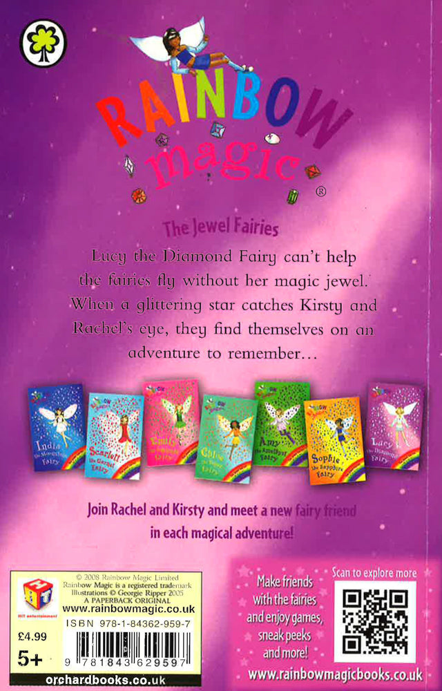 Join Rachel, Kirsty and the Jewel Fairies for enchanted fun and adventure! Get ready for an exciting fairy adventure with the no. 1 bestselling series for girls aged 5 and up. Disaster has struck Fairyland! Jack Frost has stolen all the jewels from Queen Titania's crown. Without them, the fairies' magic dust is losing its power. Rachel and Kirsty have to help the Jewel Fairies to get the jewels back... before it's too late. 'These stories are magic; they turn children into readers!' ReadingZone.com Read all seven fairy adventures in the Jewel Fairies set! India the Moonstone Fairy; Scarlett the Garnet Fairy; Emily the Emerald Fairy; Chloe the Topaz Fairy; Amy the Amethyst Fairy; Sophie the Sapphire Fairy; Lucy the Diamond Fairy. If you like Rainbow Magic, check out Daisy Meadows' other series: Magic Animal Friends and Unicorn Magic!