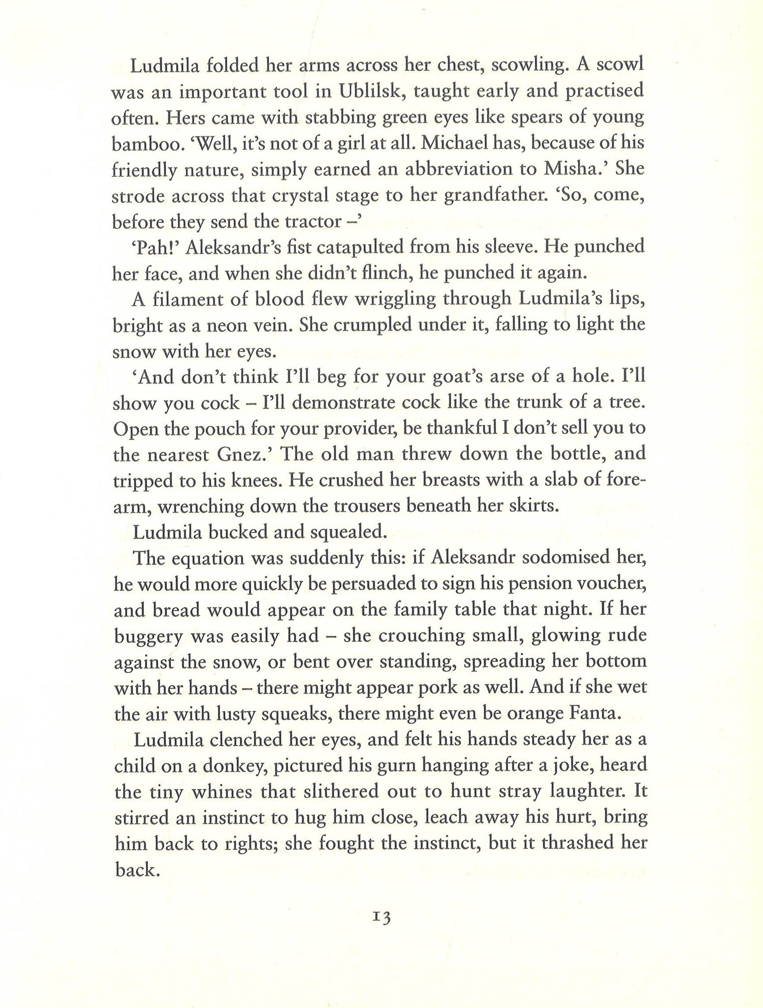 DBC Pierre's second novel charts the unlikely meeting between East and West that follows Ludmila Derev's appearance on a Russian brides website. Determined to save her family from starvation in the face of marauding Gnez troops, Ludmila's journey into the world and womanhood is an odyssey of sour wit, even sourer vodka, and a Soviet tractor probably running on goat's piss. Thousands of miles to the West, the Heath twins are separated after 33 years conjoined at the abdomen. Released for the first time from an institution rumoured to have been founded for an illegitimate child of Charles II, they are suddenly plunged into a round-the-clock world churning with opportunity, rowdy with the chatter of freedom, democracy, self-empowerment and sex. A wild and raucous picaresque dripping with flavours of British bacon and nasty Russian vodka, Ludmila's "Broken English" is a tale of tango-ing twins on a journey into the unknown. A ride so outrageously improbable it just may happen, DBC Pierre's second novel confirms his place in the ranks of today's most original storytellers.