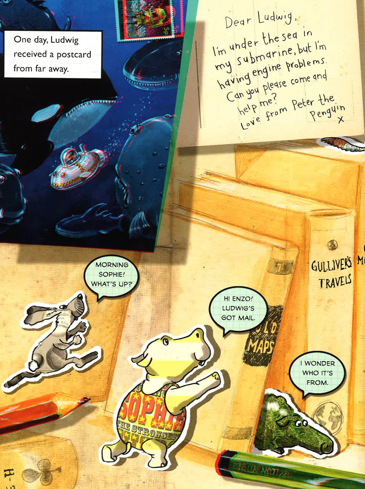 Ludwig and friends live in a world of books. One day, a postcard arrives; Ludwig's friend, Peter the penguin, has a broken submarine and needs Ludwig's help - under the sea. How can a dog who lives in a book explore the underwater world? Maybe with a bit of fairy tale magic and some help from his friends. This is the second 3D picture book from the author of Ludwig the Space Dog. Get ready for an adventure in another dimension.