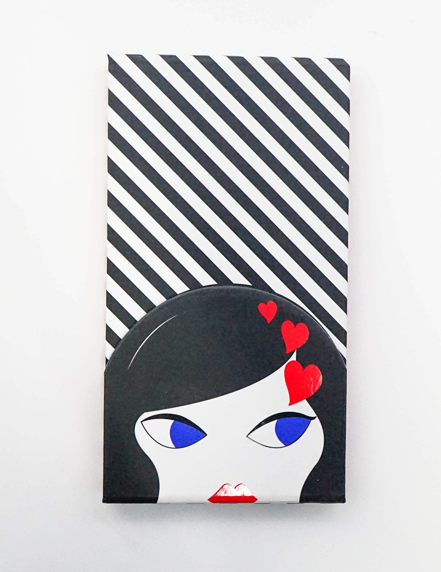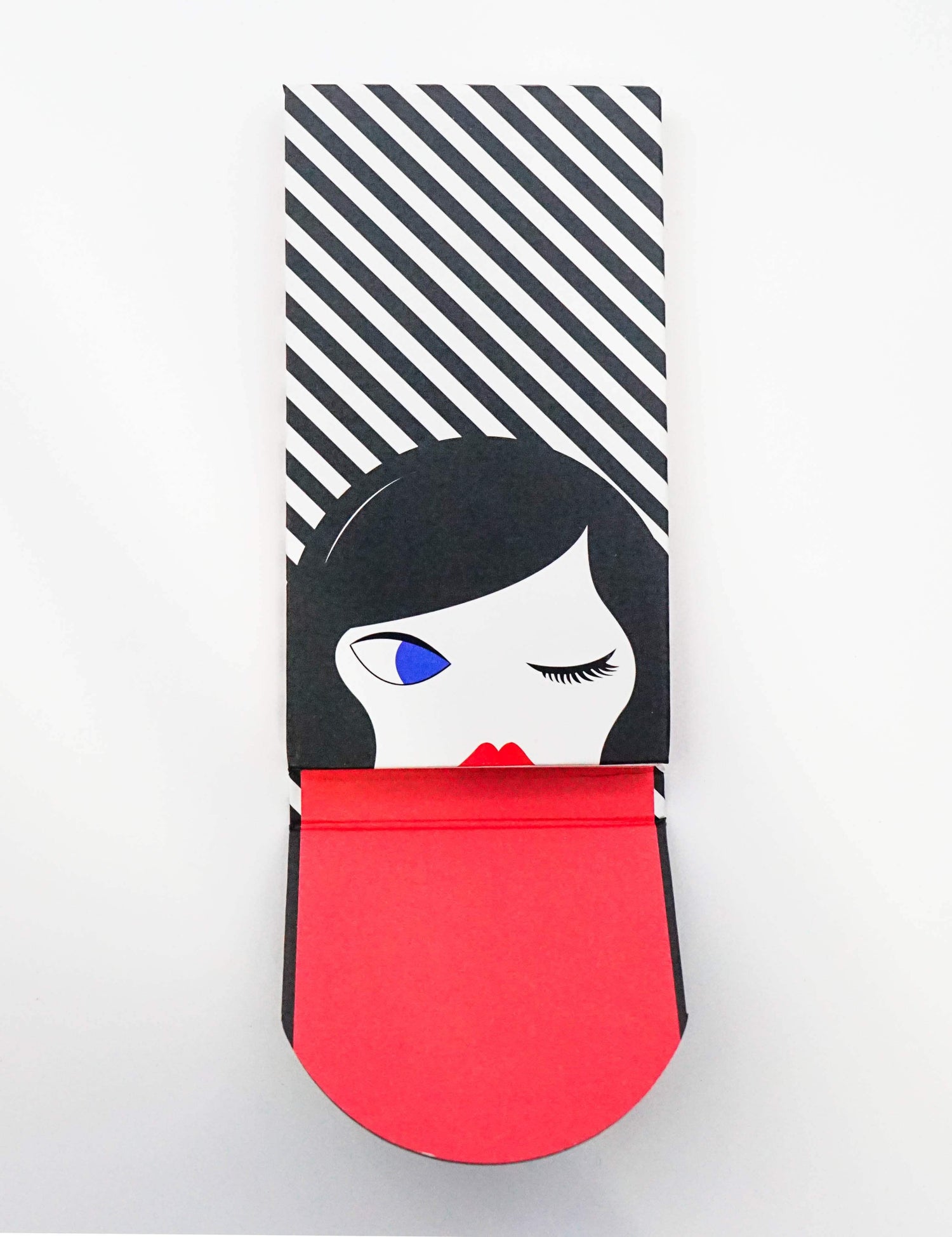 Shopping lists, reminders and notes are given the Lulu glamorous touch with this Doll Face Jotter Pad. Featuring a magnetic snap closure, flip top die-cut cover, sprayed edges and 128 tear-away blank pages adorned with the Lulu Guinness logo in gold.