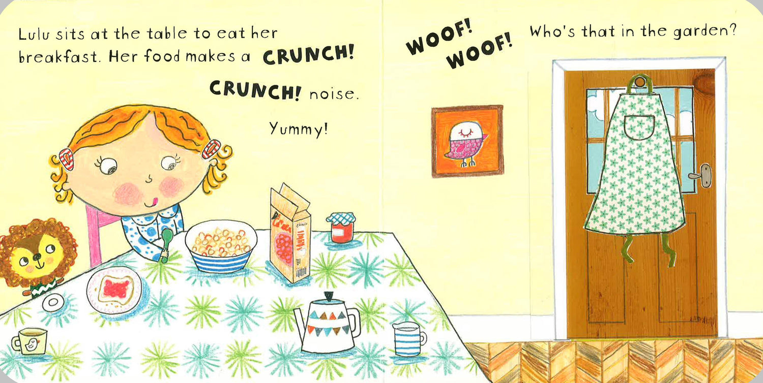 Join Lulu as she listens to her favourite noises - and has lots of fun along the way! From the tweeting birds to the ding-a-ling of Lulu's tricycle, little ones will love picking out familiar sounds in this brilliantly interactive book.